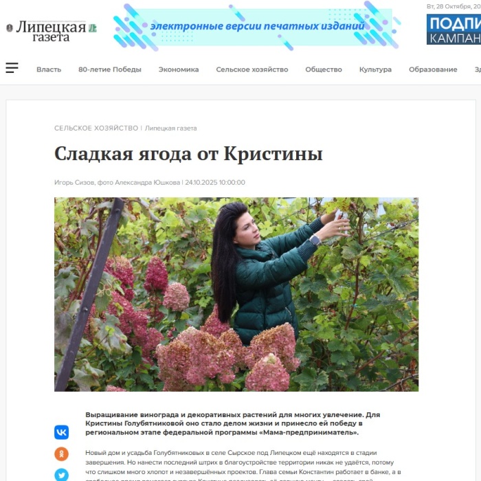 Липецкая газета: «Сладкая ягода от Кристины»