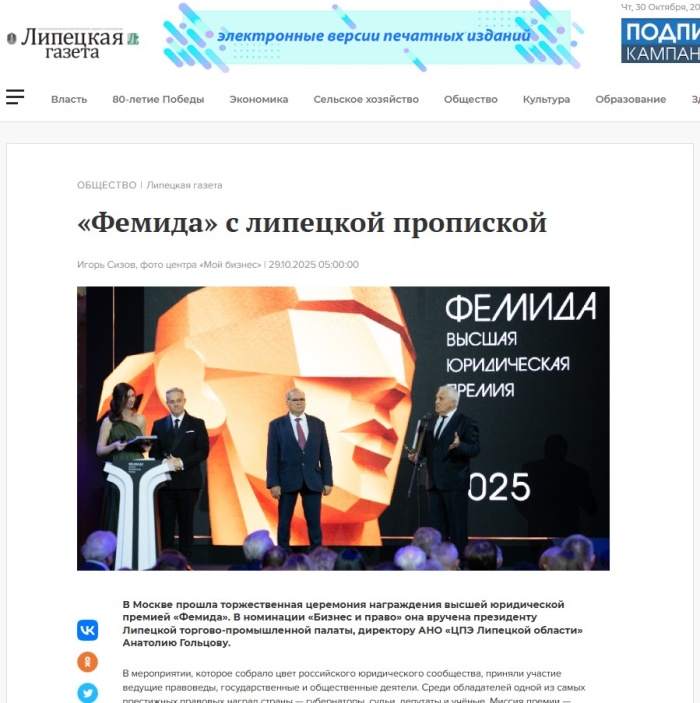 Липецкая газета: «Фемида» с липецкой пропиской