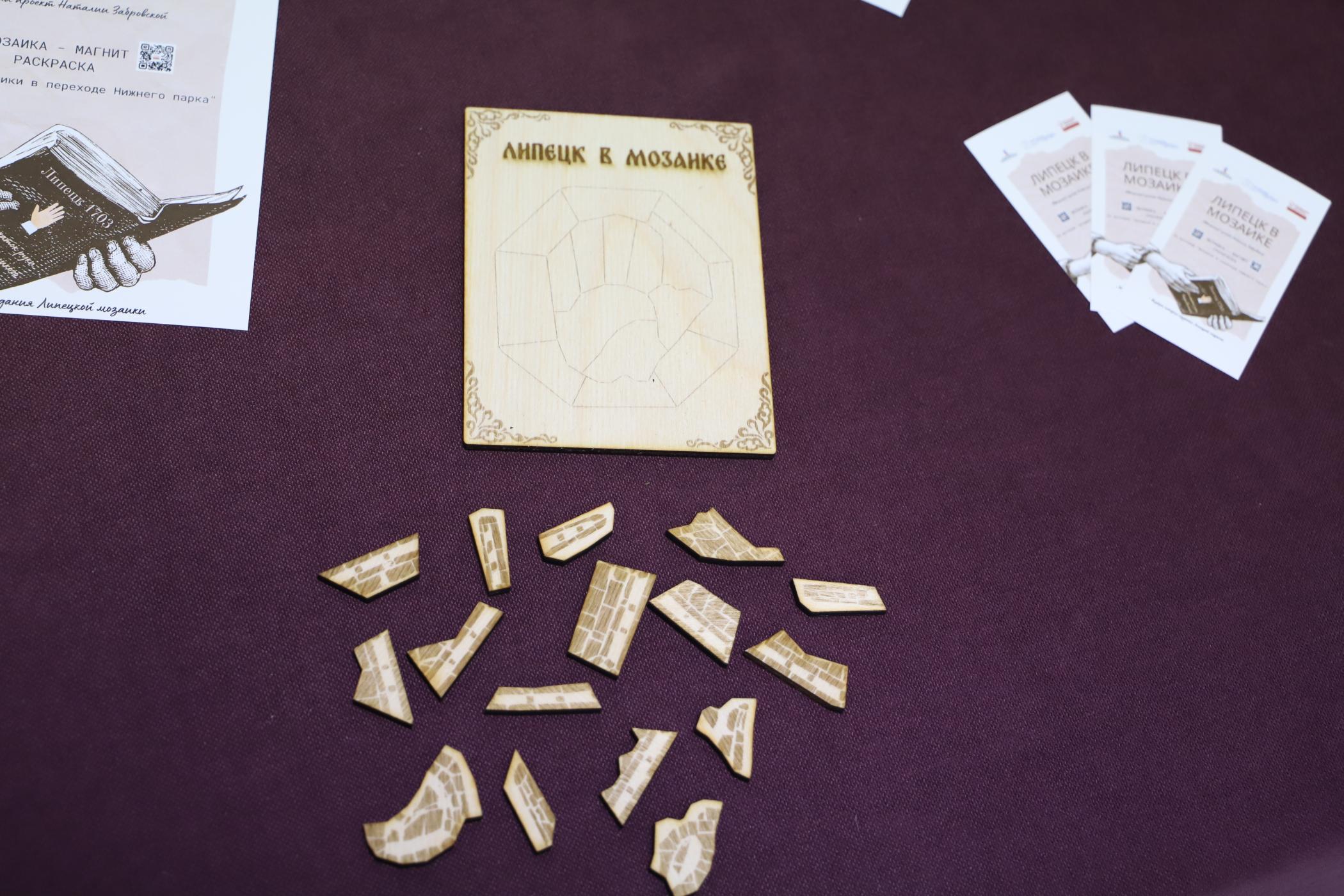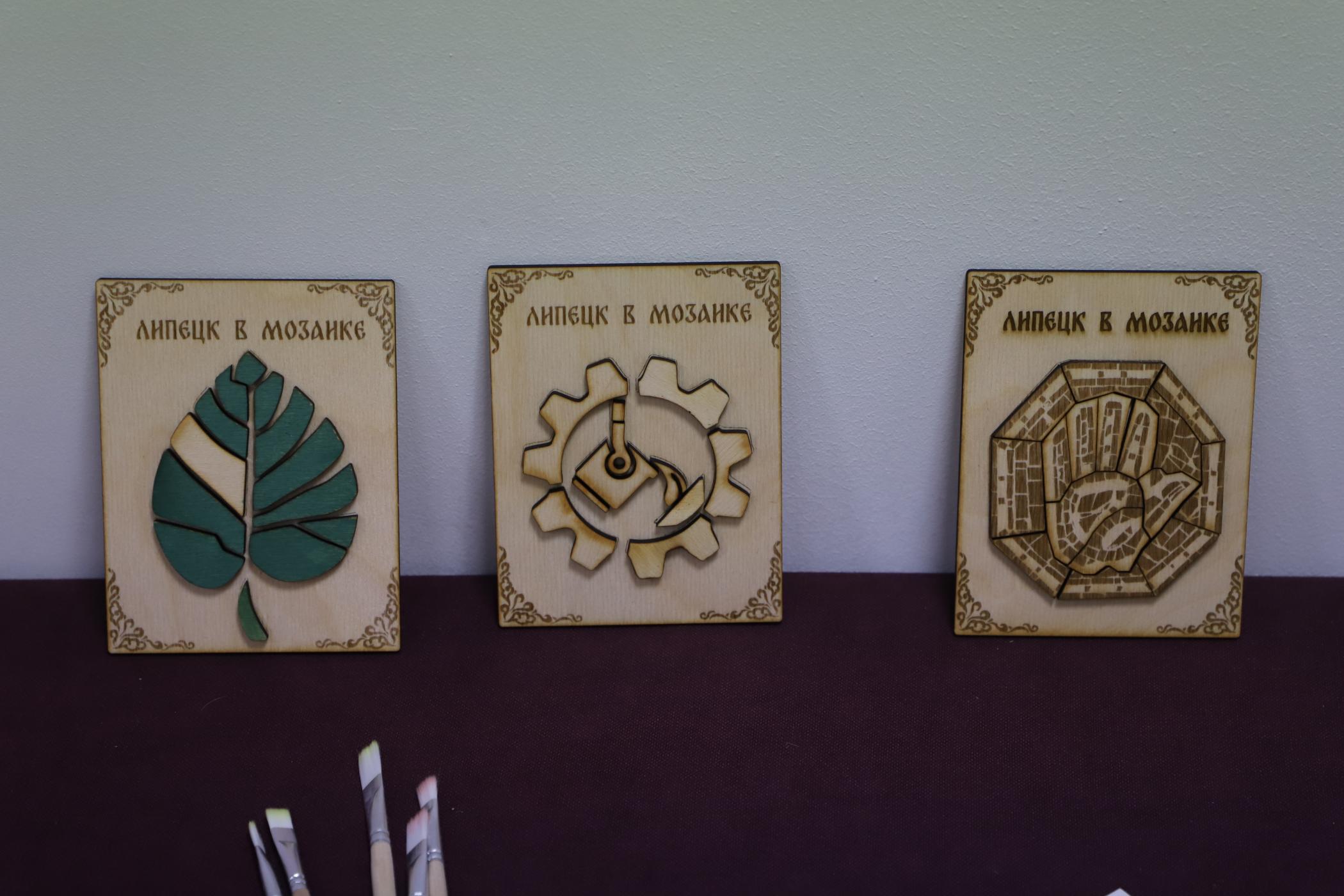 «Липецк в мозаике» включает в себя две основные части: работу над гипсовым панно, отражающим ключевые моменты истории города, и создание деревянной мозаики. В рамках презентации гости могли не только увидеть готовые работы, но и принять участие в мастер-классе: собрать и раскрасить уникальную деревянную мозаику или расписать гипсовое панно.