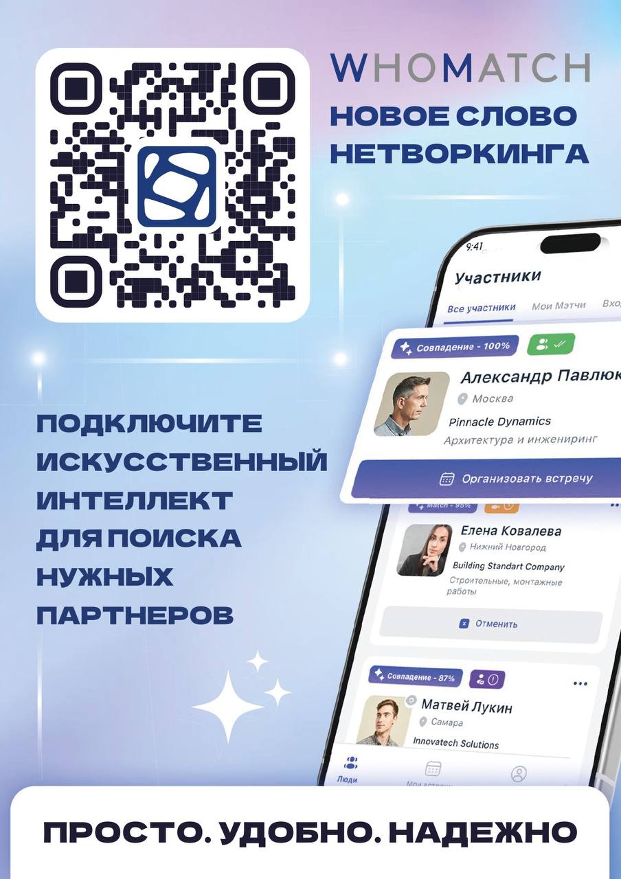 *Для повышения эффективности B2B переговоров рекомендуется использовать новое мобильное приложение "WhoMatch AI", разработанное специально для форума и доступное в App Store и Google Play. Оно анализирует цели участников, предлагает оптимальные варианты сотрудничества и помогает подбирать деловые контакты. Платформа уже открыта для регистрации, позволяет назначать встречи и согласовывать повестку. Дополнительная информация: https://t.me/moibiznes48/7975.