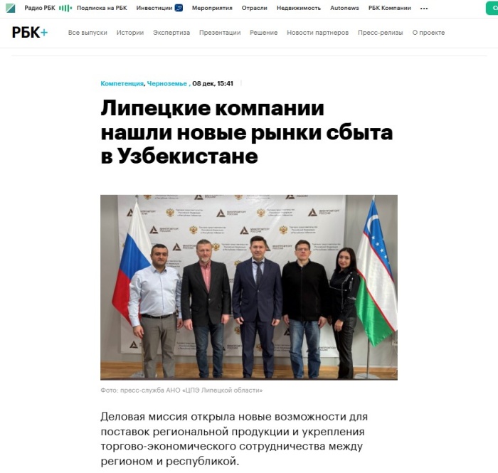 РБК: «Липецкие компании нашли новые рынки сбыта в Узбекистане»