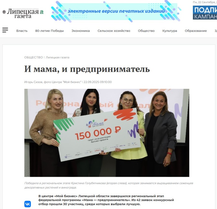 В Липецкой области определили победительницу программы «Мама-предприниматель»