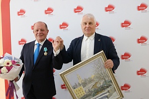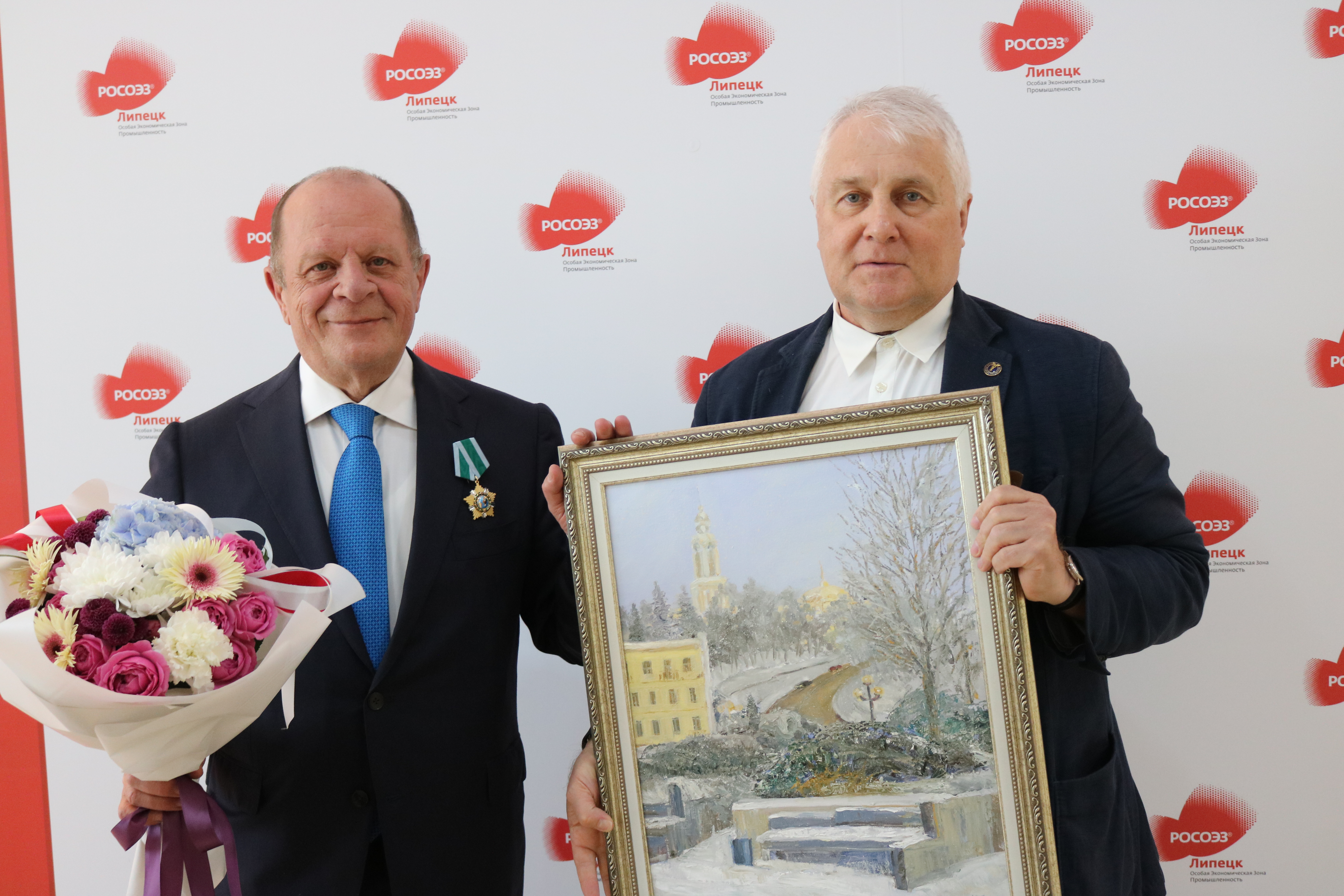 Президент Липецкой ТПП Анатолий Гольцов отметил вклад Витторио Торрембини в развитие ОЭЗ и экономики Липецкой области в целом, вручил памятные подарки и поздравил с заслуженной наградой.
