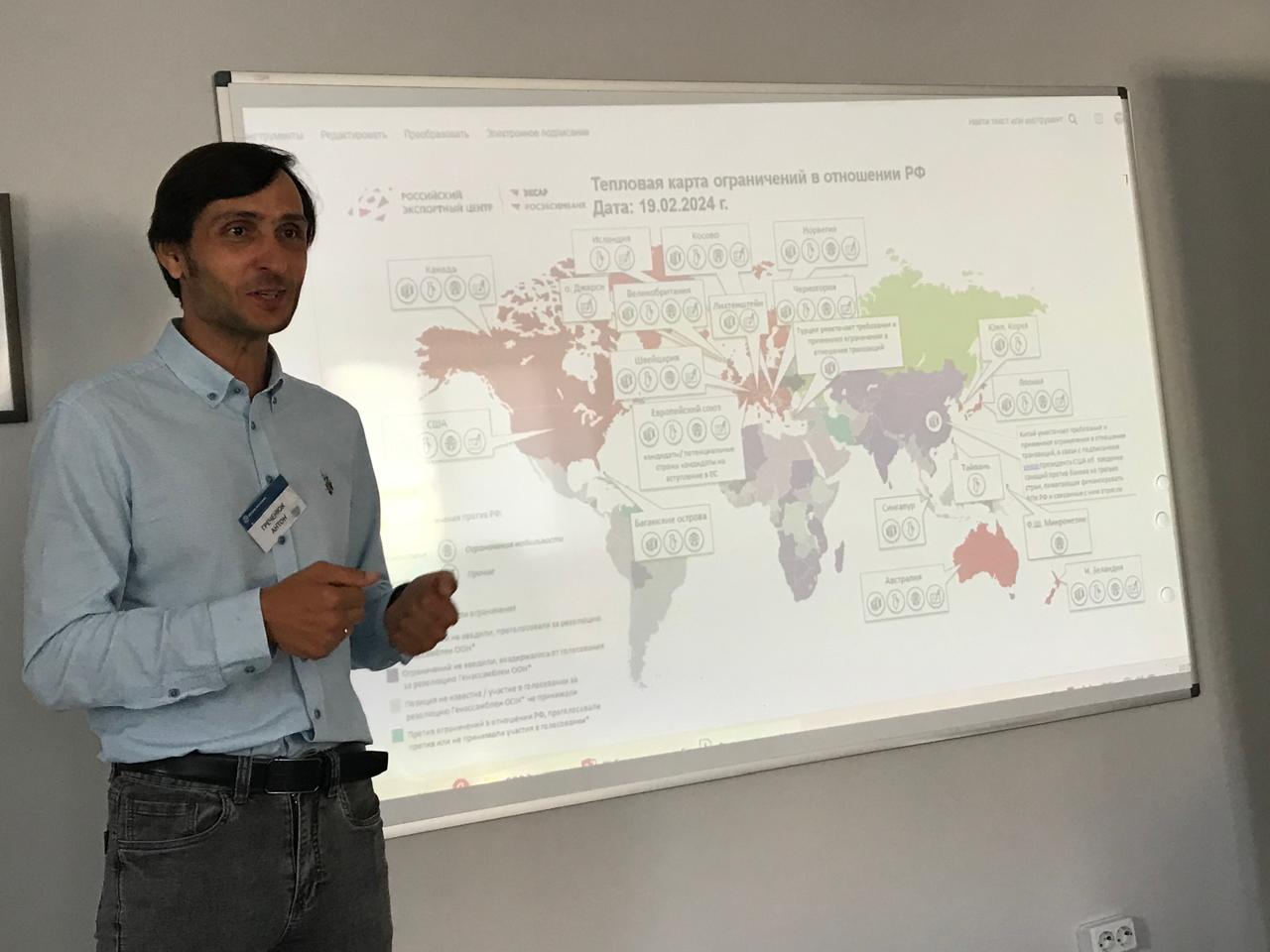 Антон Греченюк подробно рассказал участникам мастер-класса о комплексе инструментов для повышения ценности коммерческого предложения, а также презентационных материалов для сотрудничества с иностранными покупателями.
