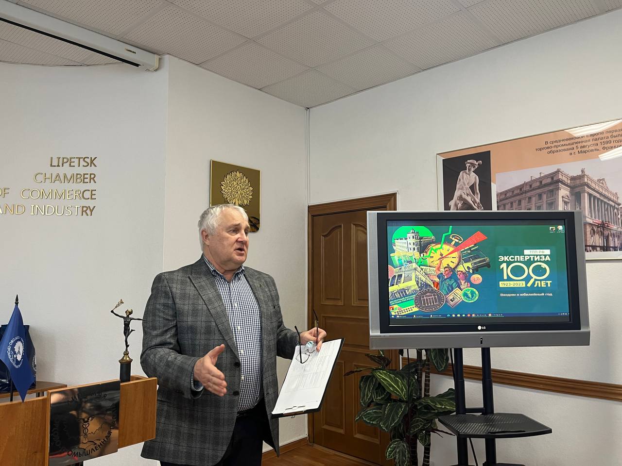 Открывая встречу, директор центра "Мой бизнес", президент Липецкой ТПП Анатолий Гольцов рассказал, что в 2023 году система ТПП в РФ отмечает 100-летие экспертизы, ведущей свою историю от первого Бюро товарных экспертиз Северо-западной областной торговой палаты в Петрограде. «Данное событие очень значимо для системы ТПП в РФ. Это событие считается точкой отсчета в истории формирования масштабной экспертной инфраструктуры торгово-промышленных палат в РФ. Липецкая торгово-промышленная палата, как часть системы ТПП РФ, является одной из ведущих экспертных организаций в ЦФО, и уже более 30 лет оказывает услуги в области экспертизы, сертификации и оценки», - отметил президент Липецкой ТПП.