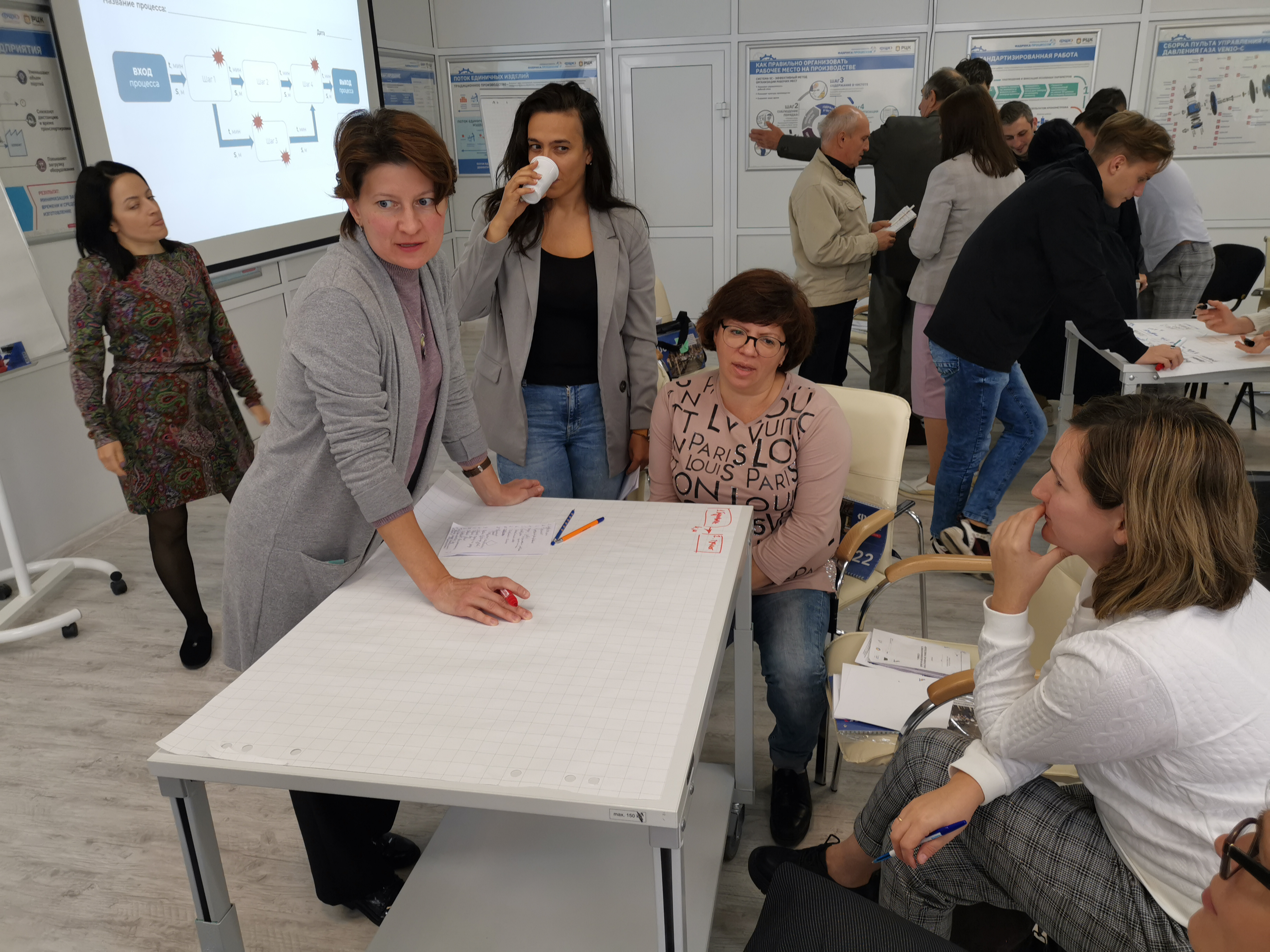 На протяжении шести часов участники работали над реальными кейсами по организации производственных процессов, искали резервы по оптимизации временных и материальных затрат, и способы мотивации персонала. Слушатели разделились на пять команд. Они описывали фотографию рабочего дня, искали типичные ошибки и с помощью методов бережливого производства, искали "узкие" места, которые можно исправить.