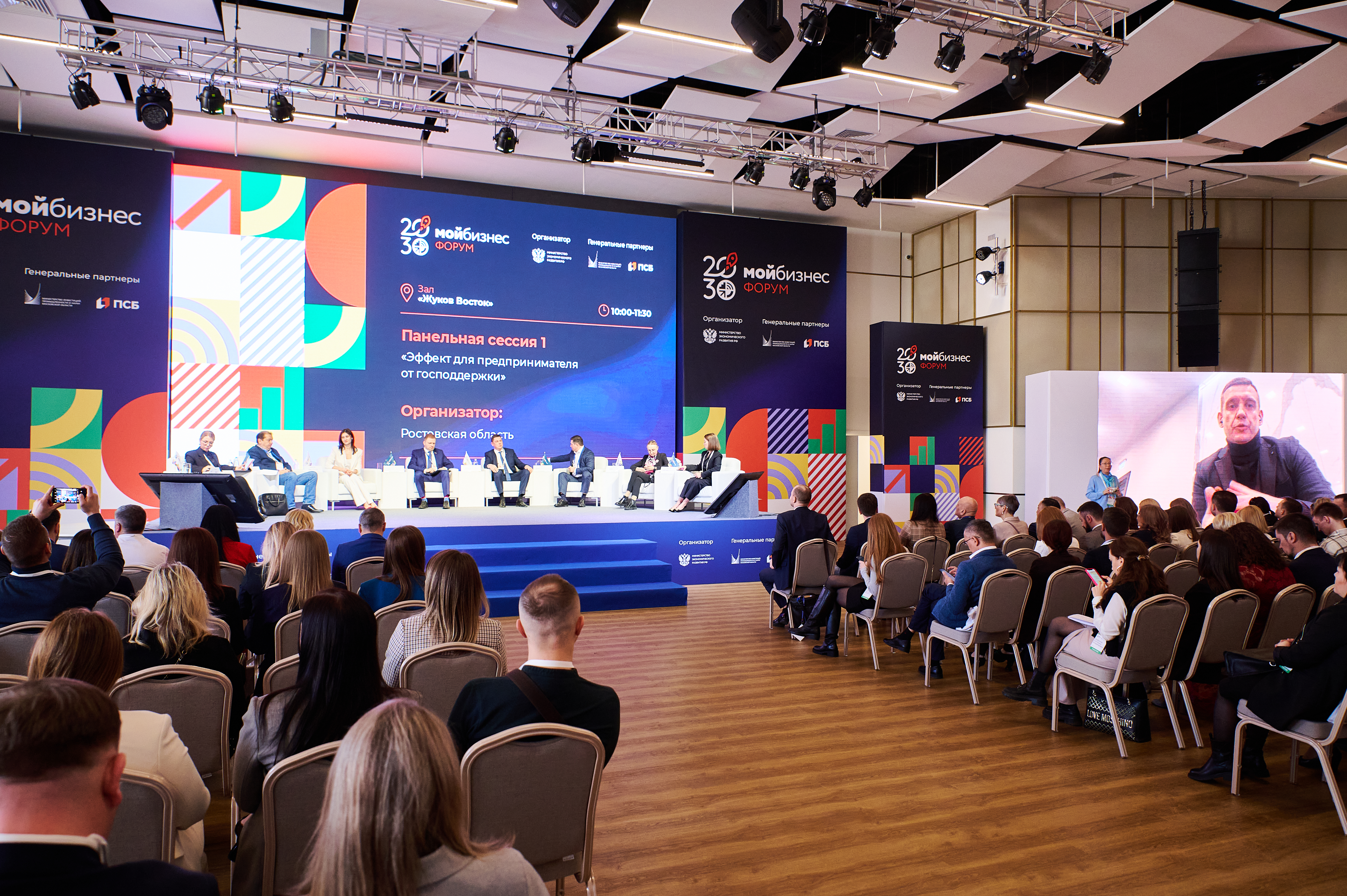 В первый день форума работа специалистов проходила в формате панельных сессий. В рамках 12 дискуссионных площадок участники мероприятия обсудили наиболее актуальные задачи. Среди них – эффективность господдержки для бизнеса, вовлеченность молодежи в предпринимательство, запуск образовательных программ, женский бизнес и многое другое.
