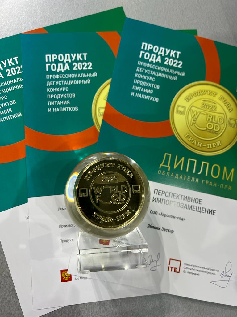 Дегустационный конкурс "Продукт года" ежегодно проводится в рамках Международной осенней выставки продуктов питания WorldFood Moscow. По результатам проведенного конкурса компания «Агроном-сад» удостоена премии «Гран-при» в категории «Перспективное импортозамещение».