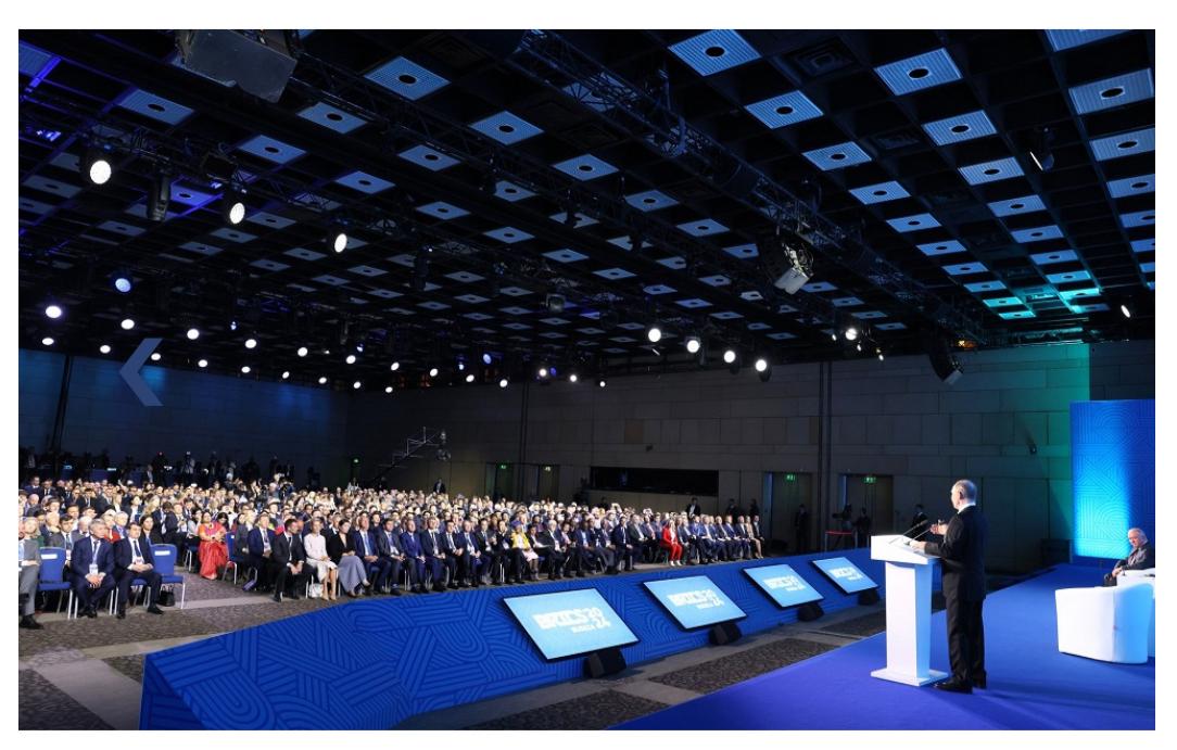 Владимир Путин сообщил, что совокупный ВВП объединения составляет более 60 триллионов долларов, а общая доля в мировом валовом продукте уверенно превышает соответствующий показатель стран «семерки» и продолжает расти. На БРИКС приходится порядка четверти мирового экспорта товаров. При этом компании стран объединения доминируют на многих ключевых рынках, в том числе энергетических ресурсов, металлов, продовольствия, то есть на рынках тех товаров, без которых невозможно устойчивое экономическое развитие.
