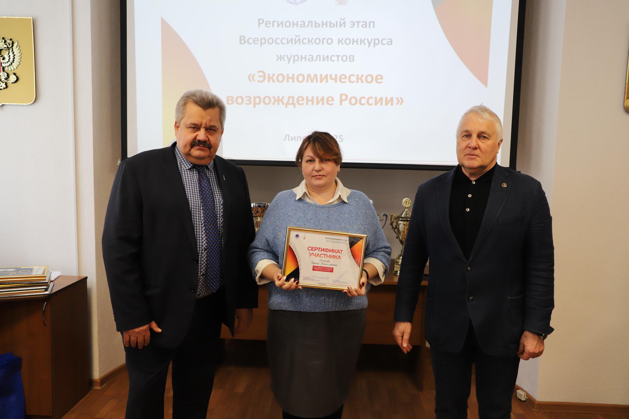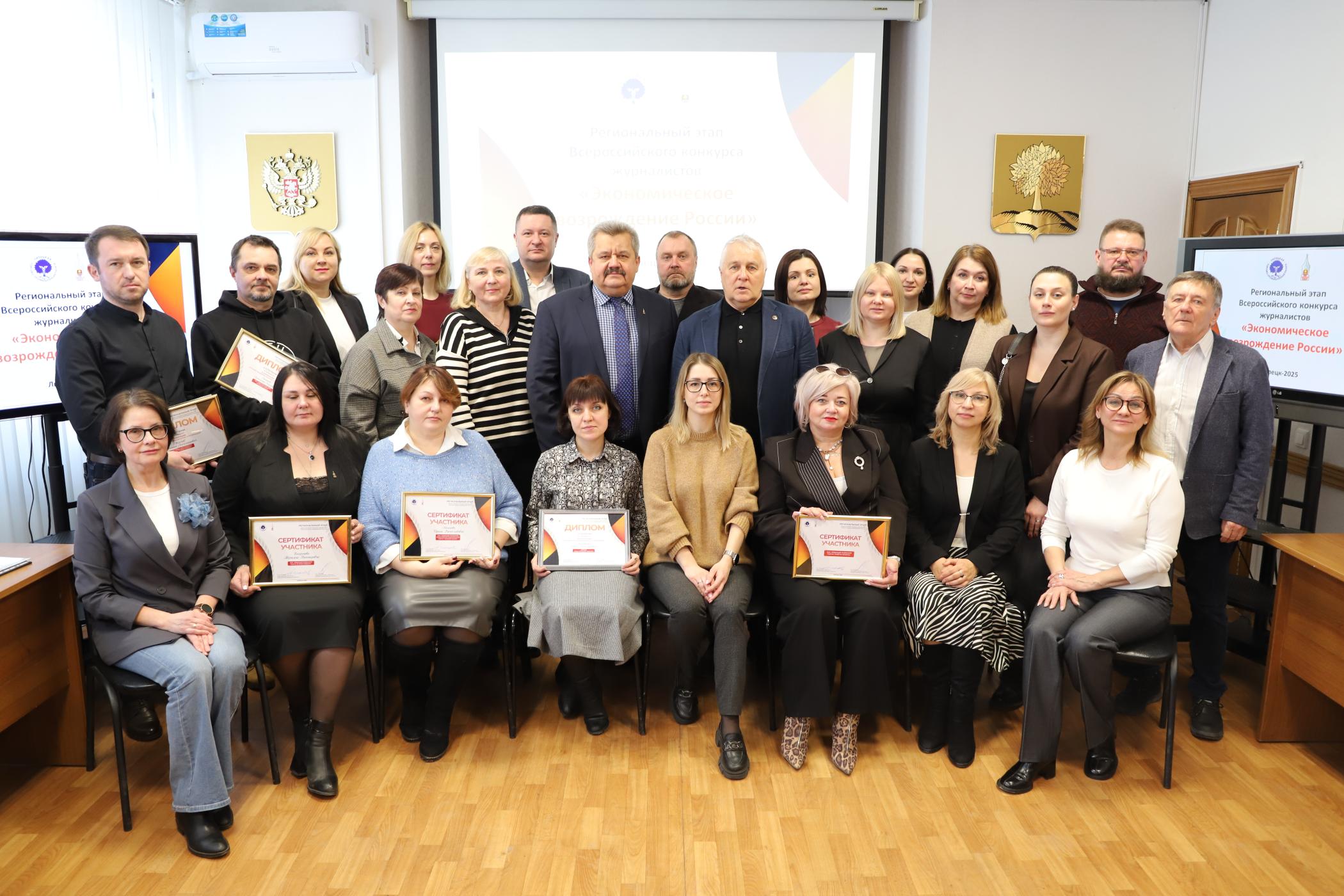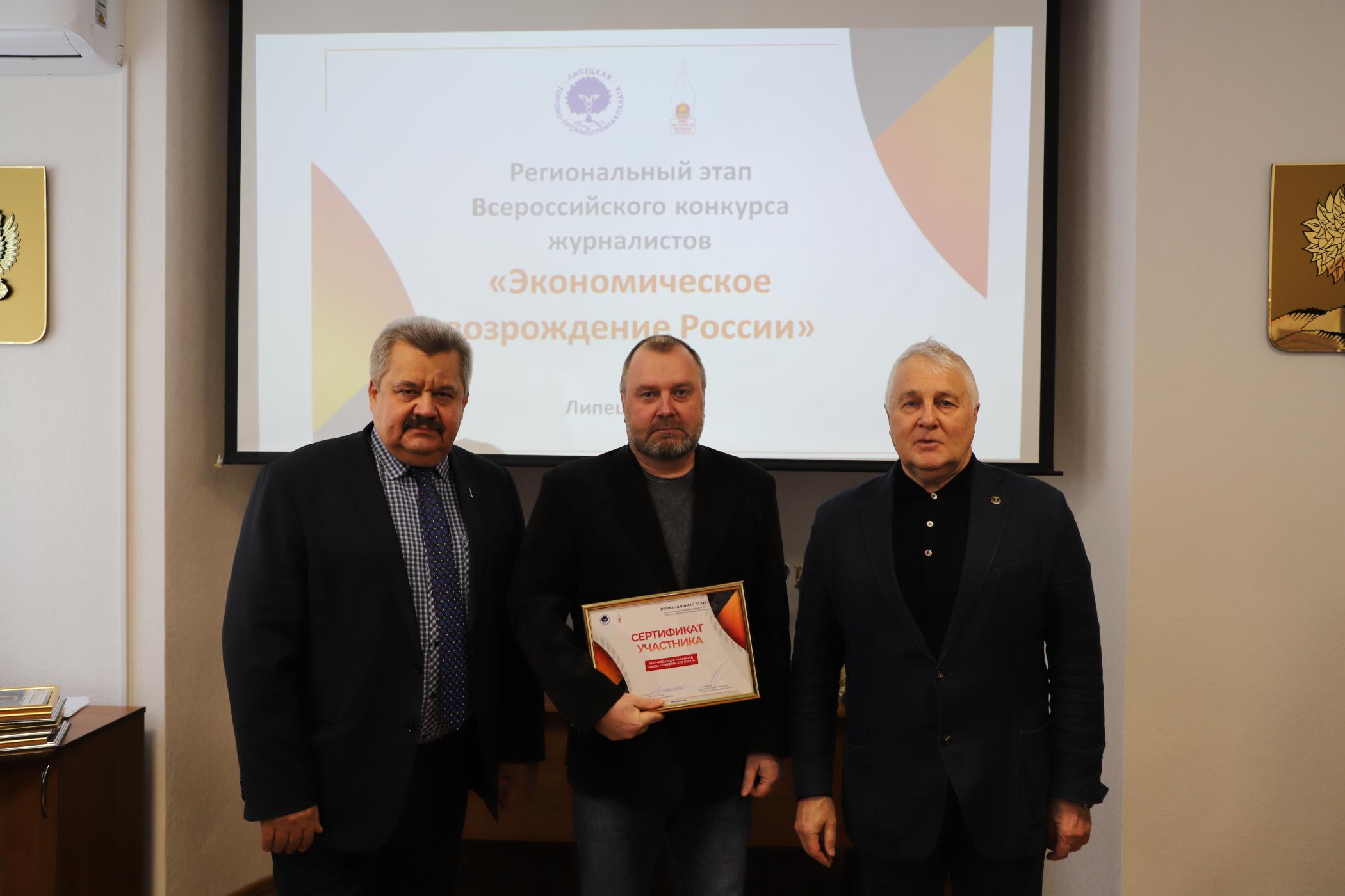 27 февраля в конференц-зале Союза "Липецкая торгово-промышленная палата" состоялась торжественная церемония награждения журналистов и редакционных коллективов по итогам регионального этапа Всероссийского конкурса журналистов «Экономическое возрождение России» за 2024 год.