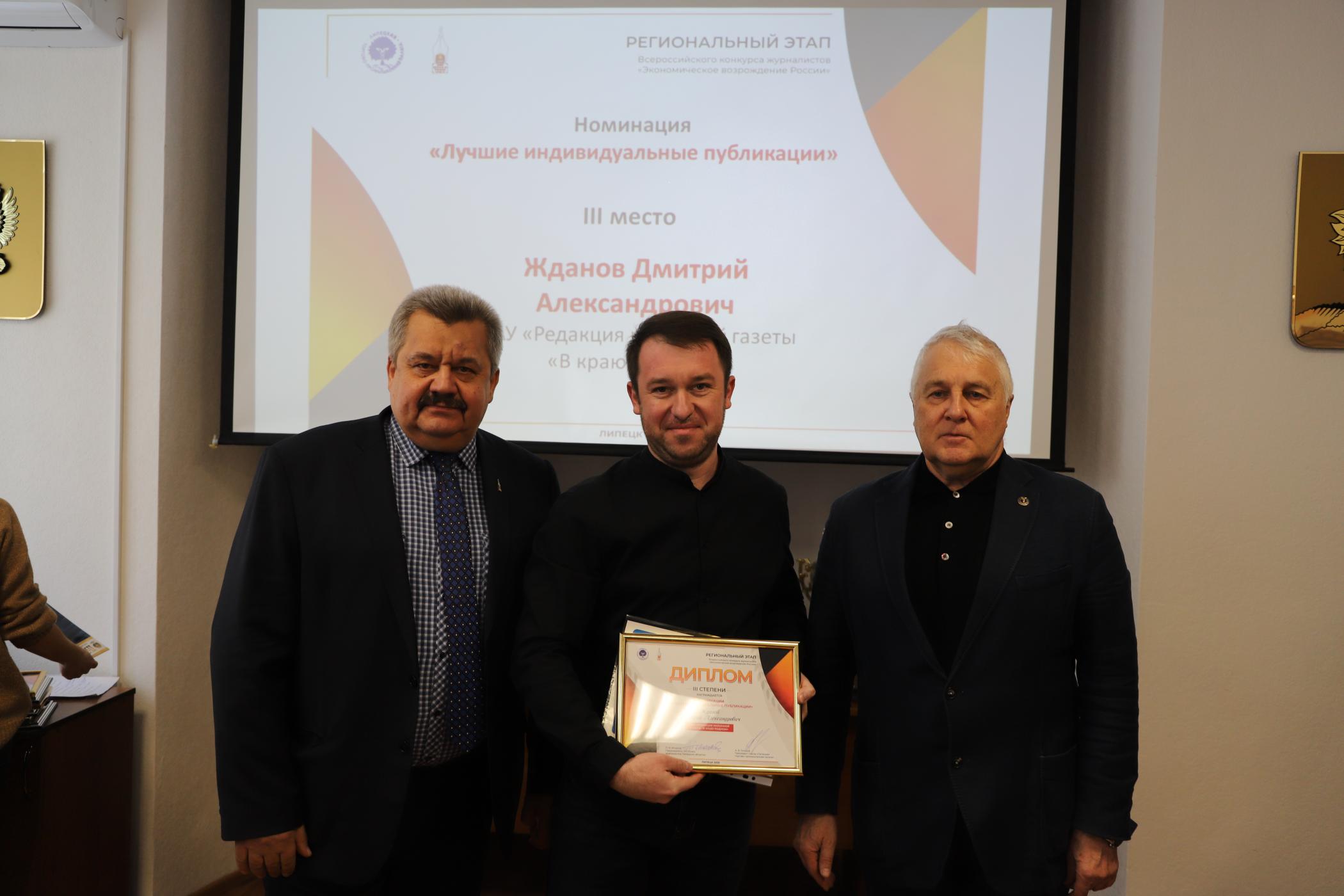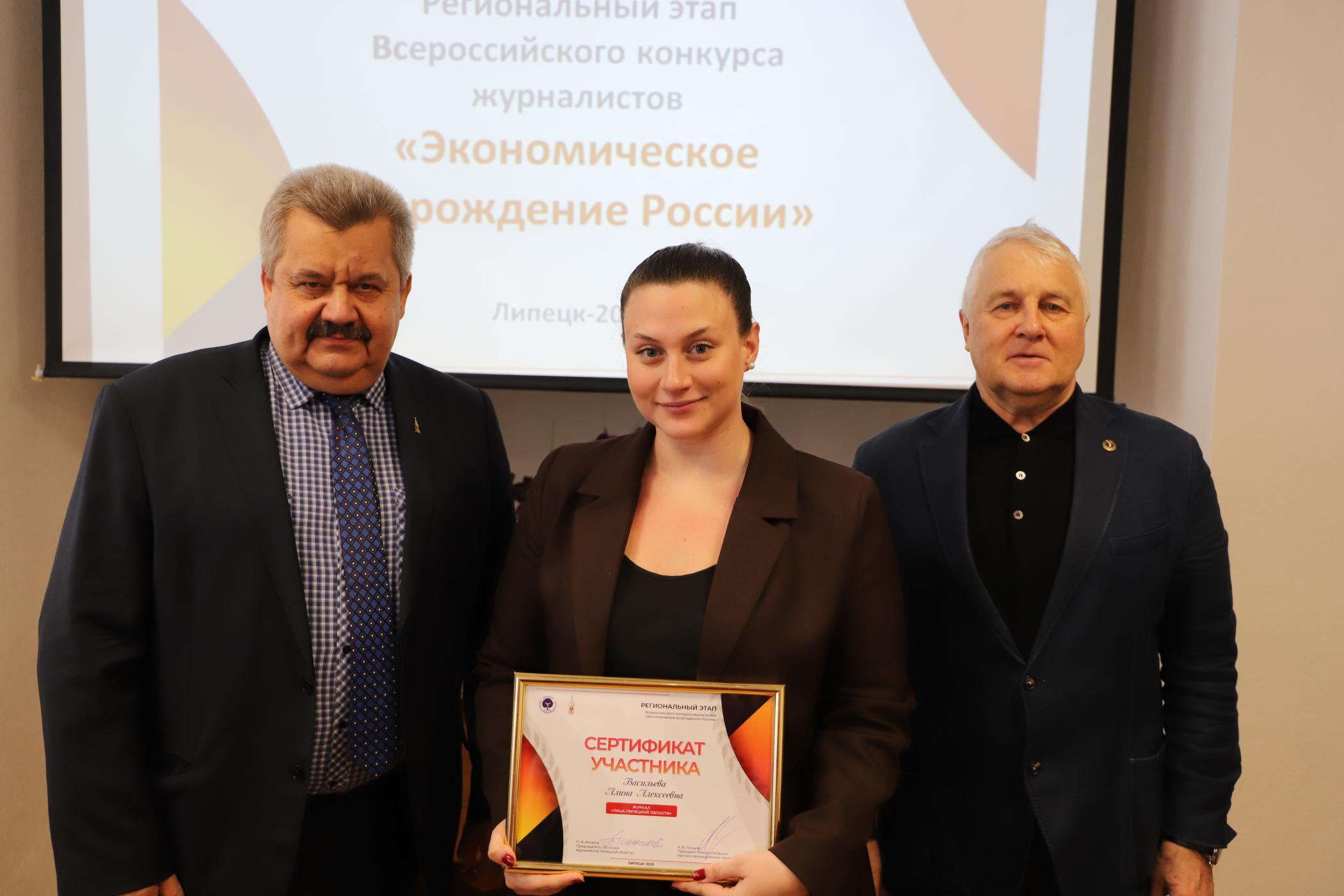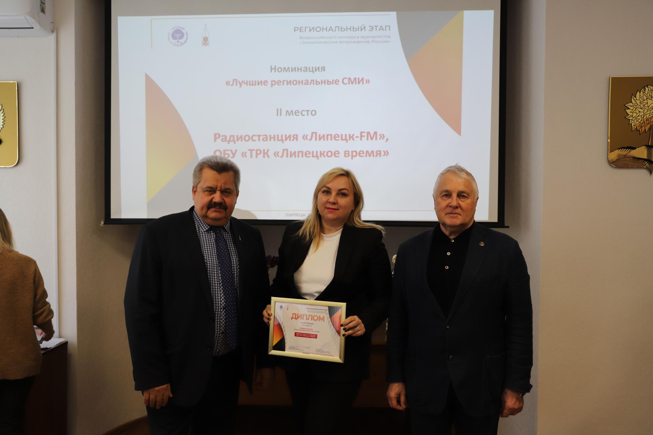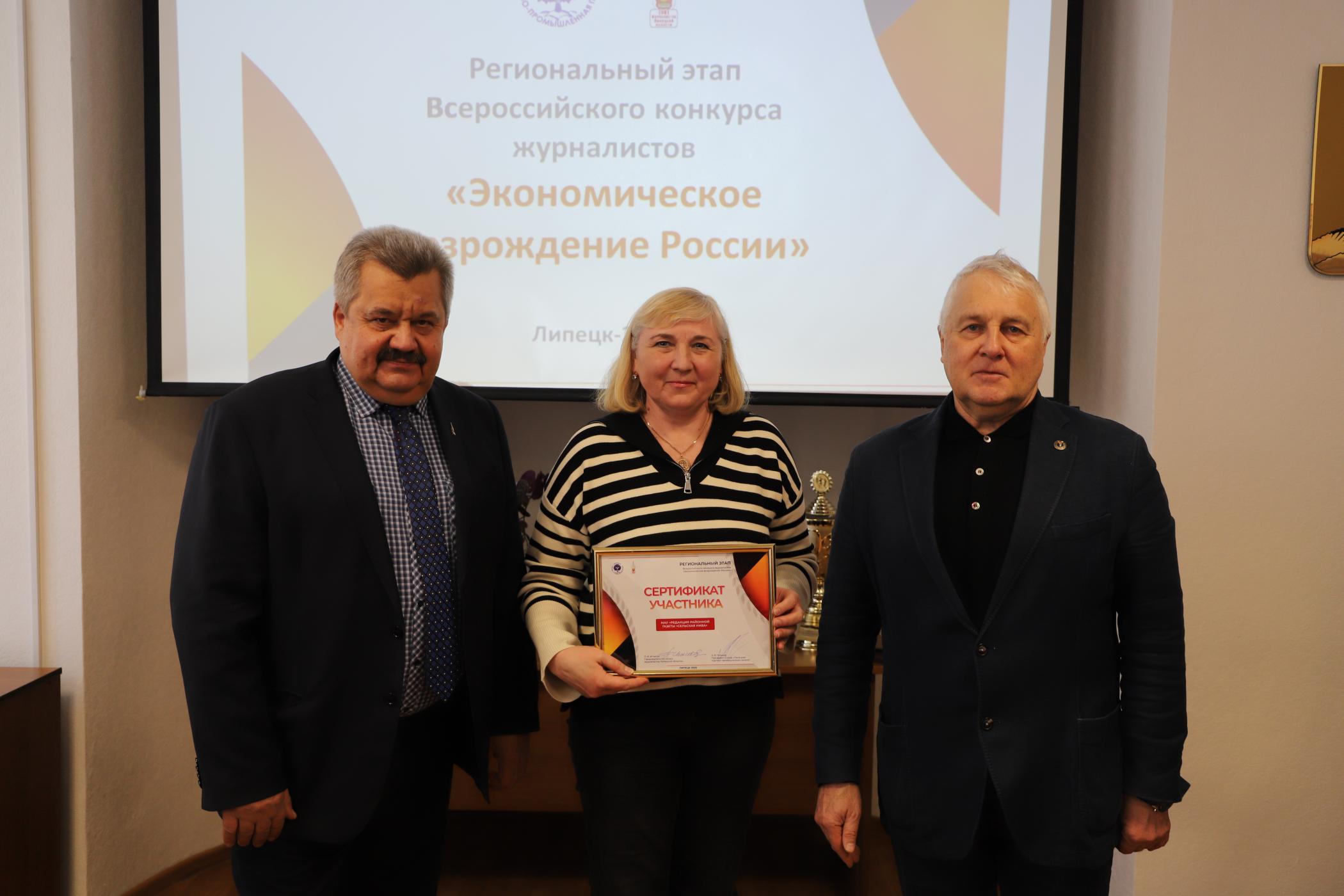 27 февраля в конференц-зале Союза "Липецкая торгово-промышленная палата" состоялась торжественная церемония награждения журналистов и редакционных коллективов по итогам регионального этапа Всероссийского конкурса журналистов «Экономическое возрождение России» за 2024 год.