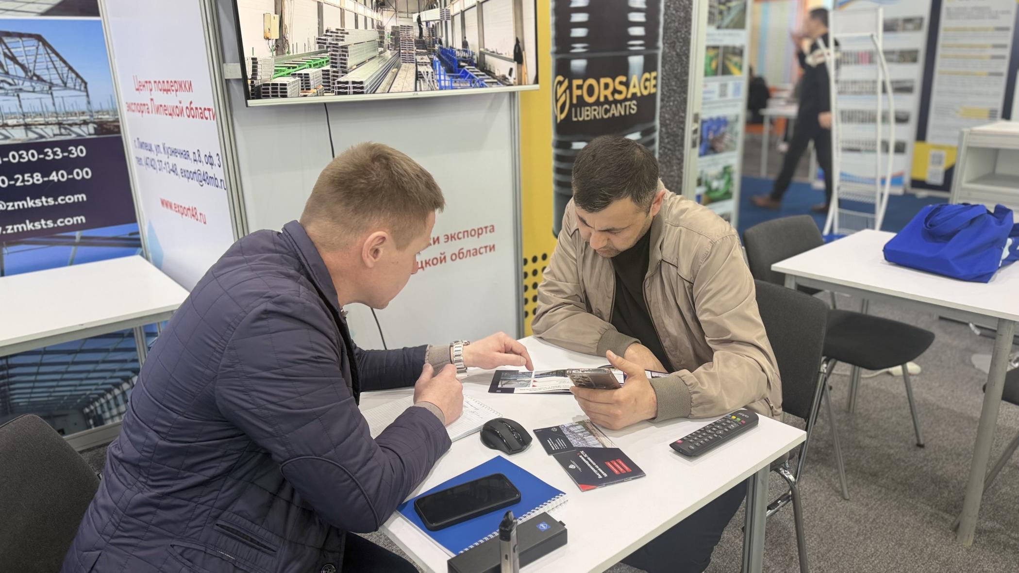 Благодаря Центру поддержки экспорта Липецкой области (входит в структуру центра «Мой бизнес») наш регион на коллективном стенде представили пять экспортно ориентированных компаний: ООО «Липецктехнолит», ООО «Ремлитмаш», ООО «ЗМК СТС», ООО «Ласар» и ООО «Форсаж-Ойл». Наиболее продуктивной работа на выставке оказалась для предприятий — «Форсаж-Ойл» и «ЗМК СТС».