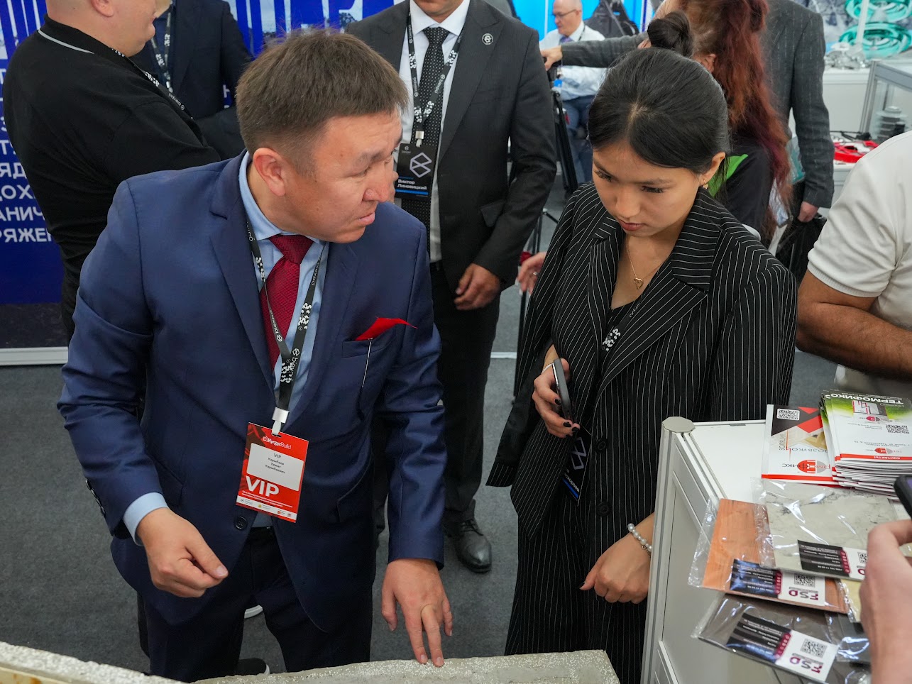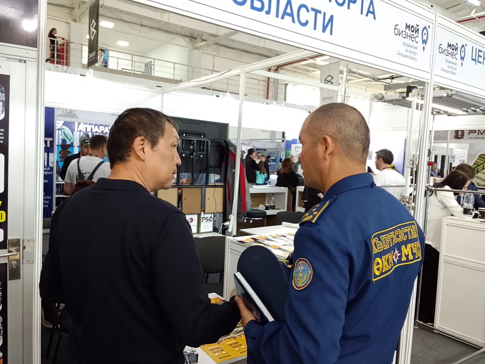 Коллективный стенд Липецкой области посетили первый заместитель министра экономики и коммерции Кыргызстана Чоро Сеитов, министр строительства, архитектуры и жилищно-коммунального хозяйства Нурдан Орунтаев, торговый представитель Российской Федерации в Киргизской Республике Айнур Саманов.