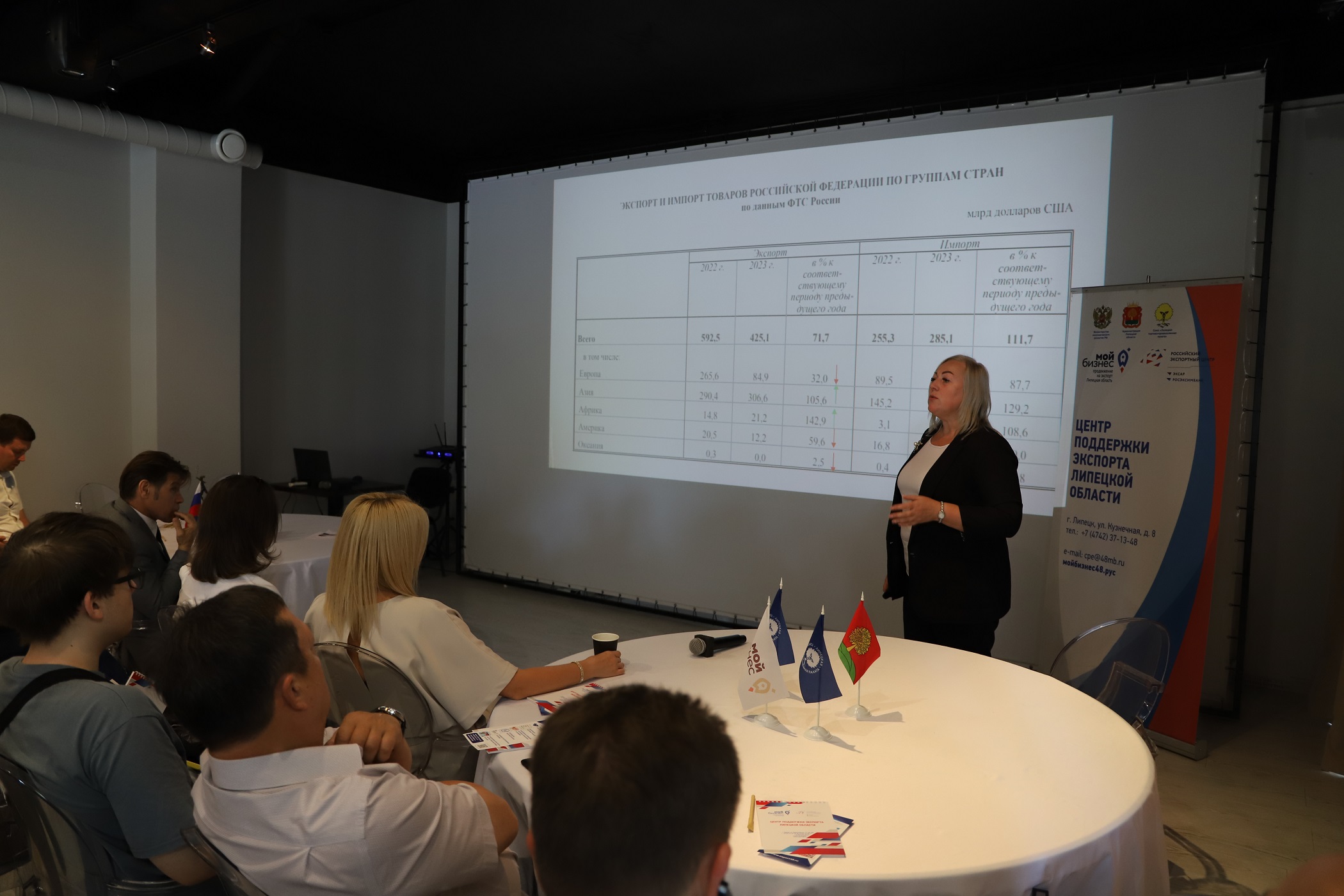 4 сентября в Липецке состоялся круглый стол «Проблемы и перспективы экспорта в современных условиях». В нём приняли участие более 25 представителей малого и среднего бизнеса.