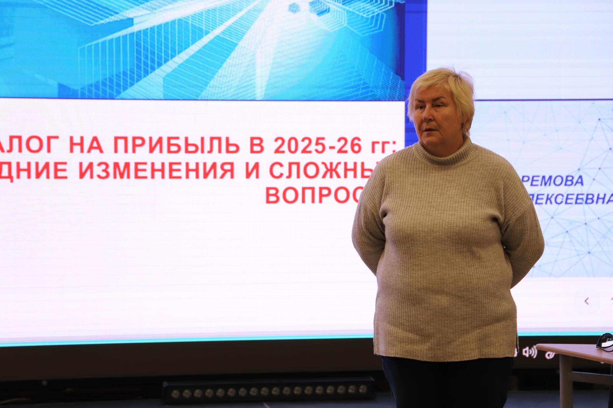 Ключевой темой встречи стали нововведения по налогу на добавленную стоимость (НДС) и налогу на прибыль. Спикером выступила признанный эксперт в области бухгалтерского учета и налогообложения, аудитор, автор более 20 книг и 200 публикаций А.А. Ефремова.