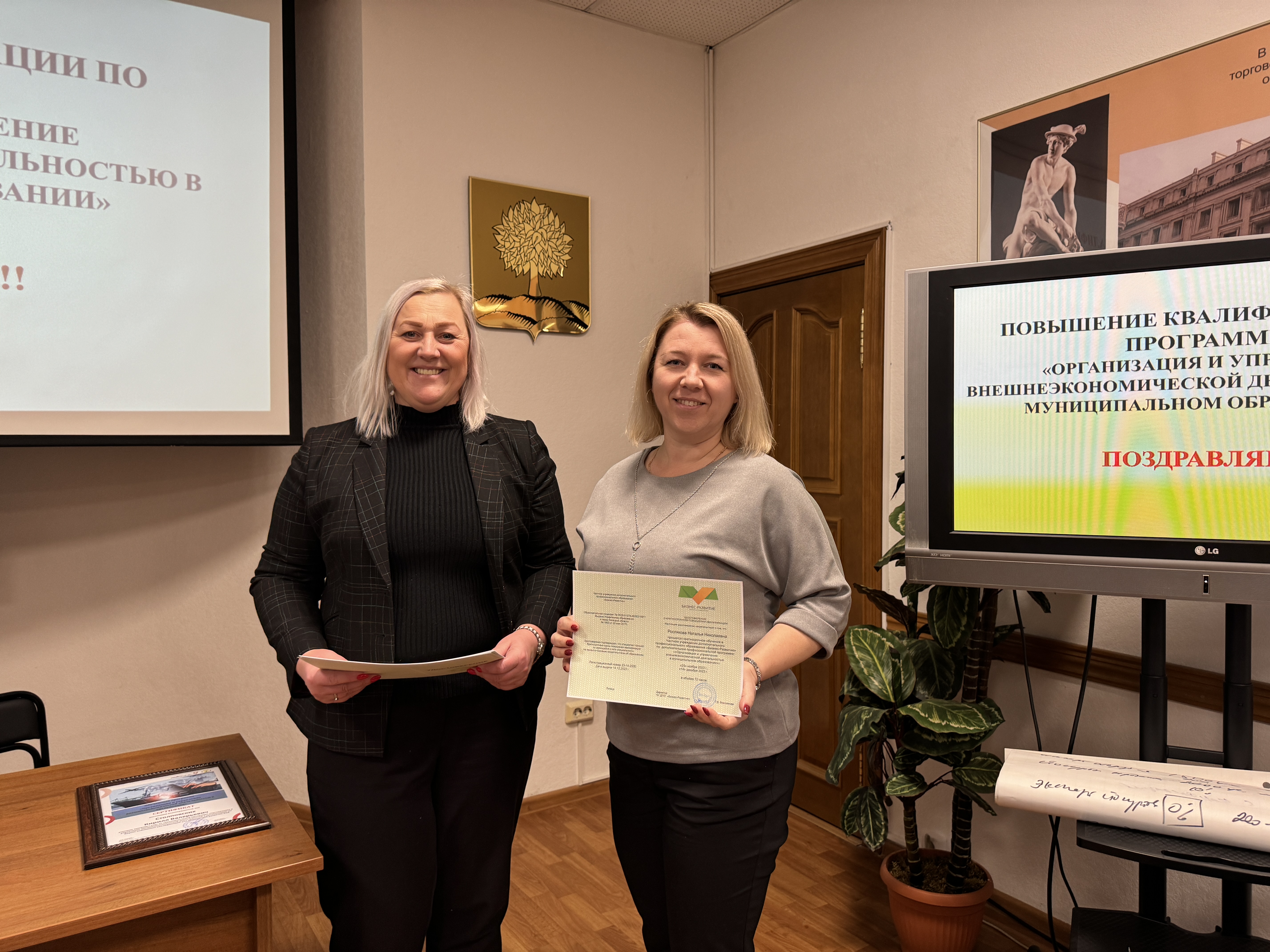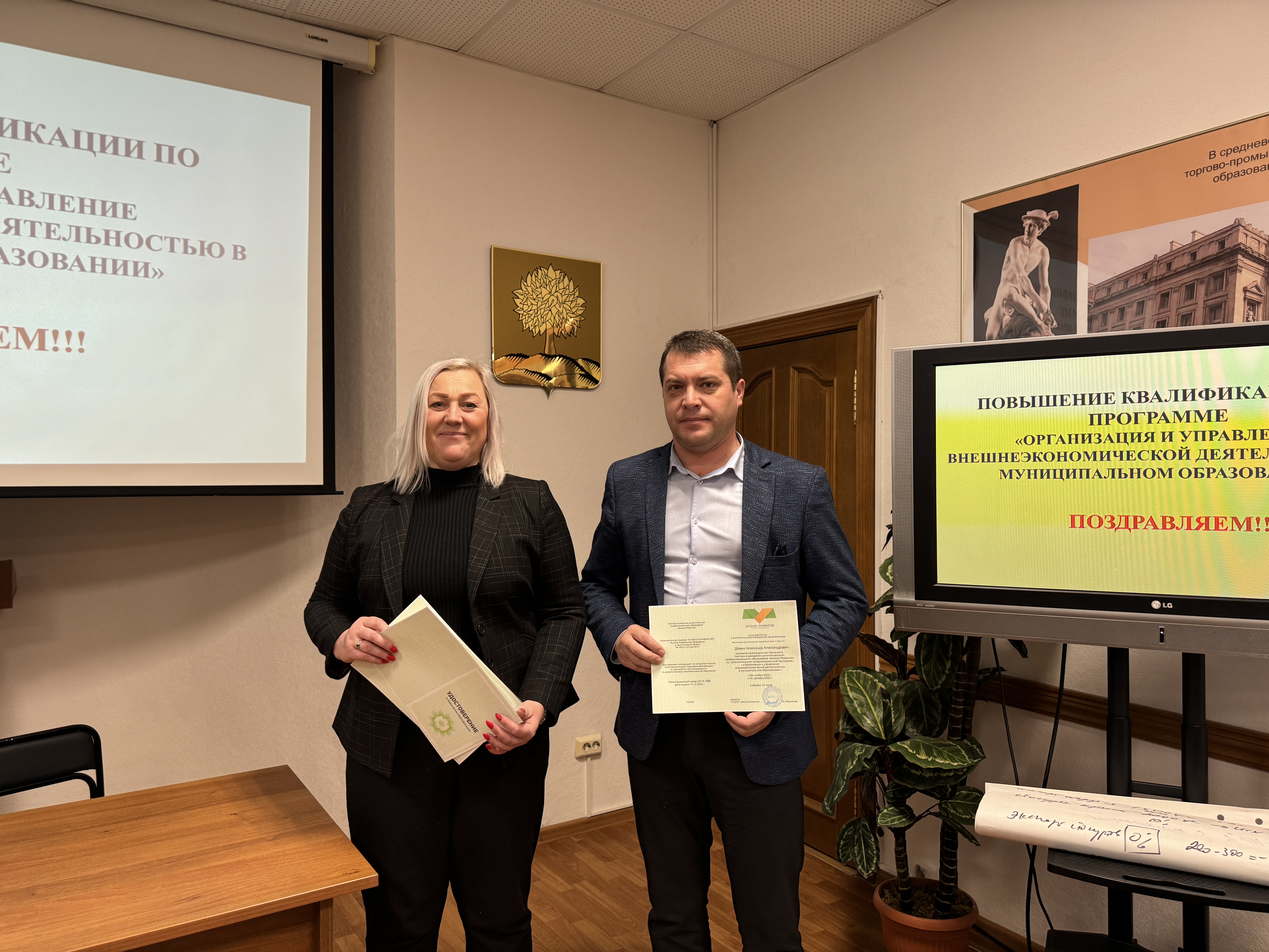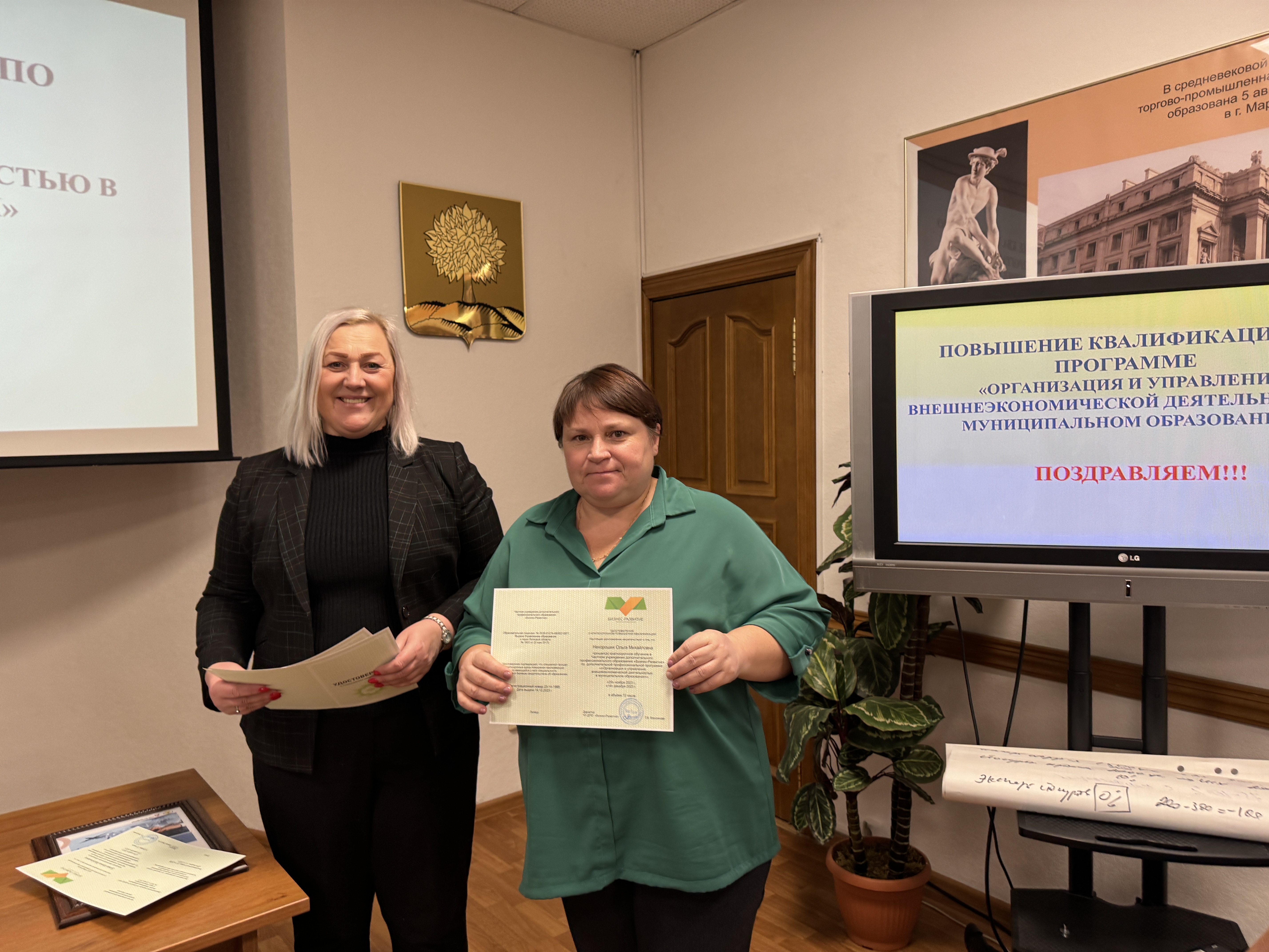 14 декабря специалисты в сфере экономического развития из 18 районов Липецкой области, городов Липецка и Ельца завершили обучение по дополнительной образовательной программе «Организация и управление внешнеэкономической деятельностью в муниципальном образовании». Удостоверения о повышении квалификации получили 40 человек, они прошли успешную итоговую аттестацию по результатам двух потоков обучения, которое организовала Липецкая торгово-промышленная палата с привлечением услуг центра «Мой бизнес».