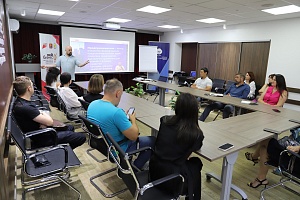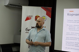 Спикер рассказал собравшимся о том, кто такие наставники и какова их мотивация, кто может стать наставником, а также в каких проектах наставники могут принять участие: обучение, сопровождение бизнеса.