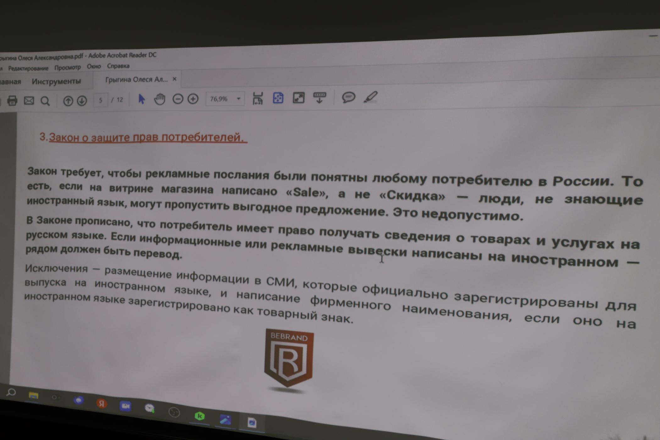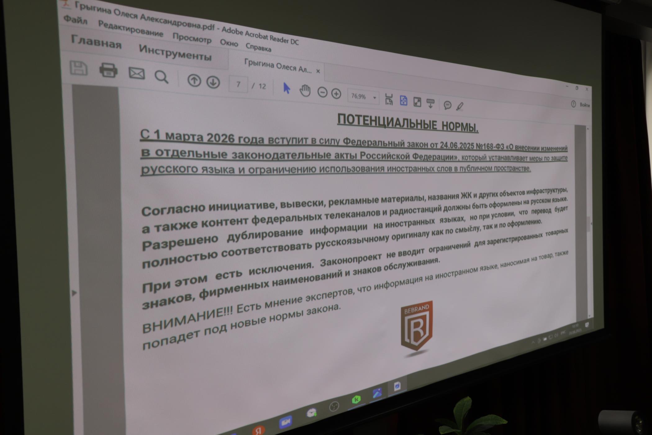 Участники встречи обсудили, как отличить товарный знак от коммерческого обозначения, как бизнесу обеспечить «равнозначность» размещения информации на русском и других языках, как минимизировать риски.