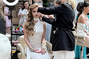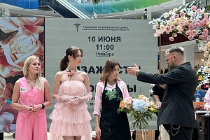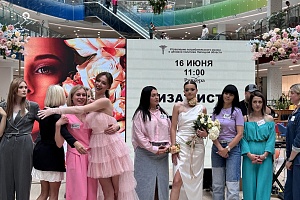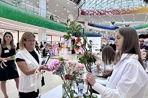 Дата выбрана не случайно, в преддверии выпускных объединили два прекрасных направления. Конкурсанты-визажисты подготовили полный образ выпускниц 2024 года, а конкурсанты-флористы красивый букет.
