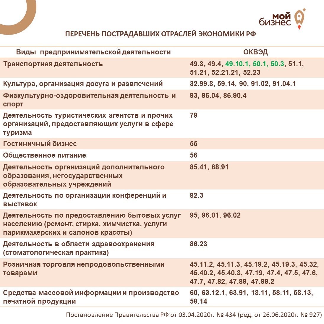 26 июня Правительством расширен Перечень пострадавших отраслей экономики (постановление Правительства РФ от 26.06.2020 г. № 927)