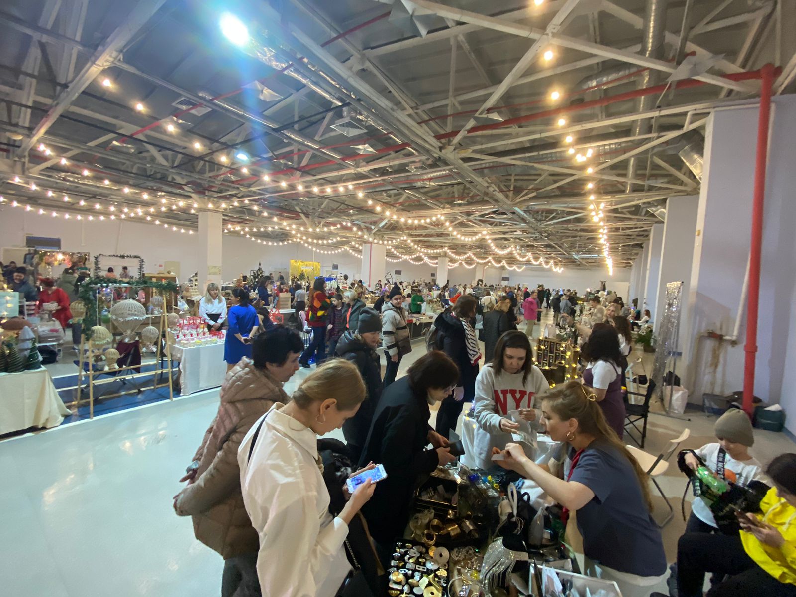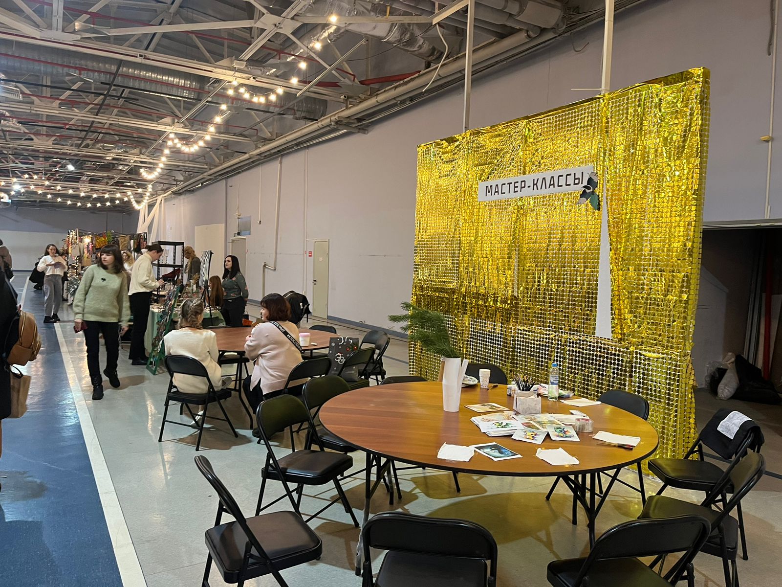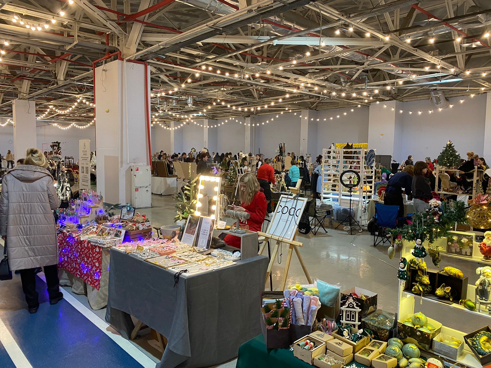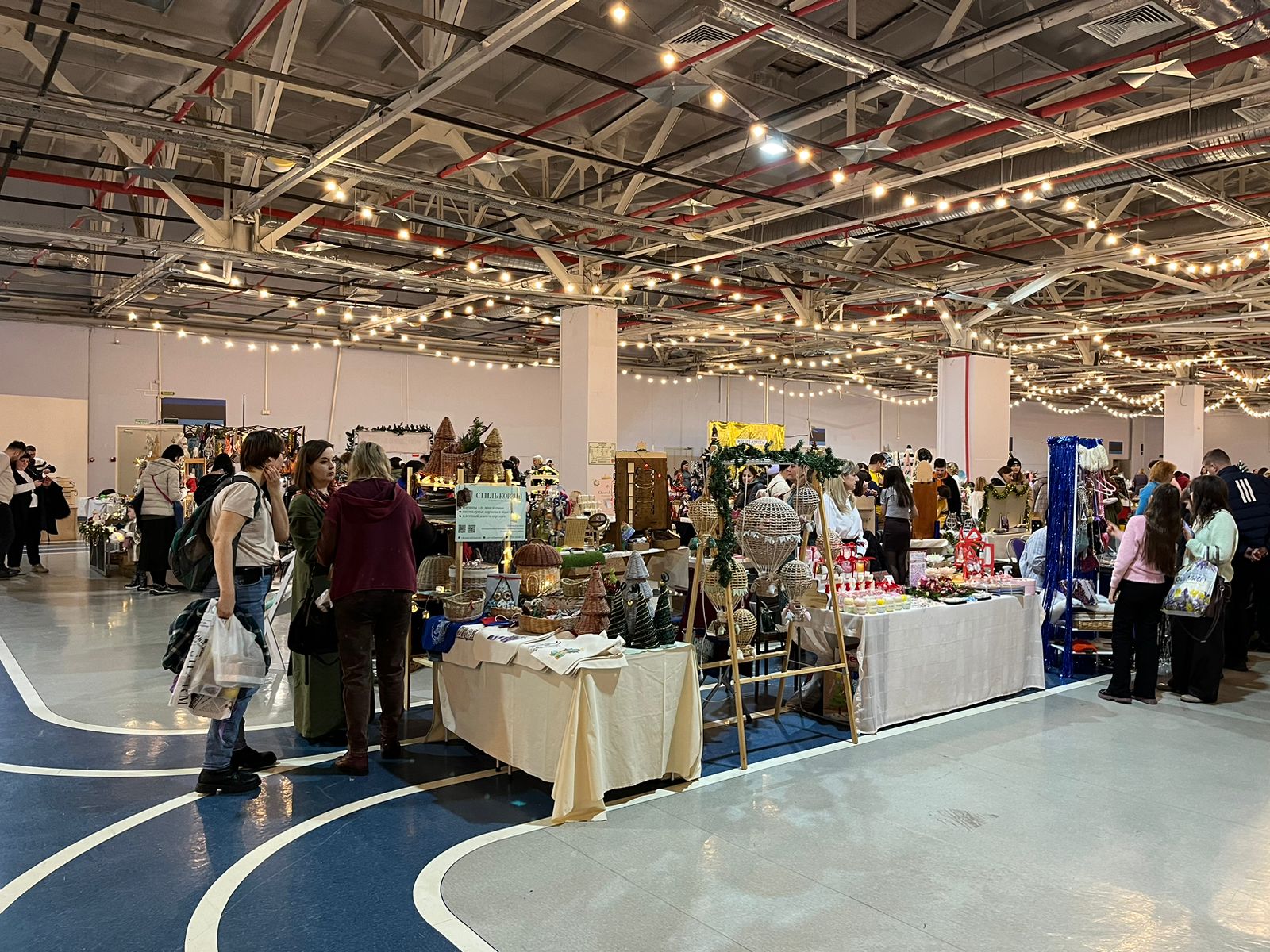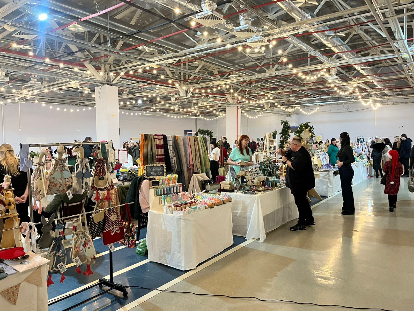 На ярмарке царила новогодняя атмосфера. Для посетителей работали бесплатные площадки, где ремесленники показывали мастер-классы по созданию праздничных сувениров и ёлочных игрушек.