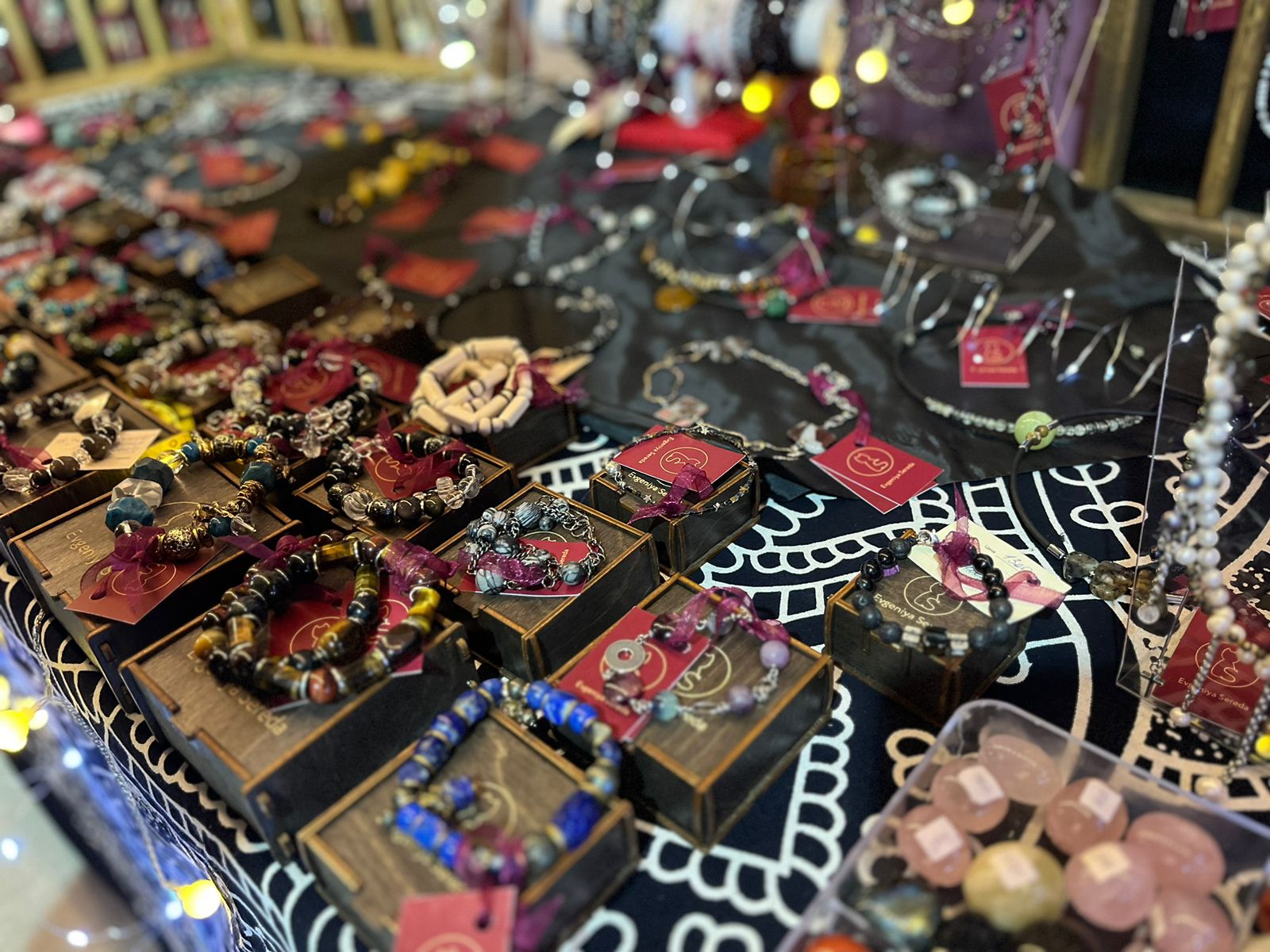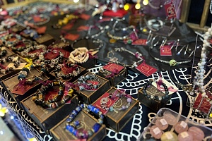 Все товары, представленные на ярмарке, были ручной работы. Это елочные игрушки, подарочные наборы, свечи, бижутерия, кожгалантерея, игрушки, мыло ручной работы, эксклюзивные предметы интерьера, изделия из эпоксидной смолы, шарфы, палантины, коврики.