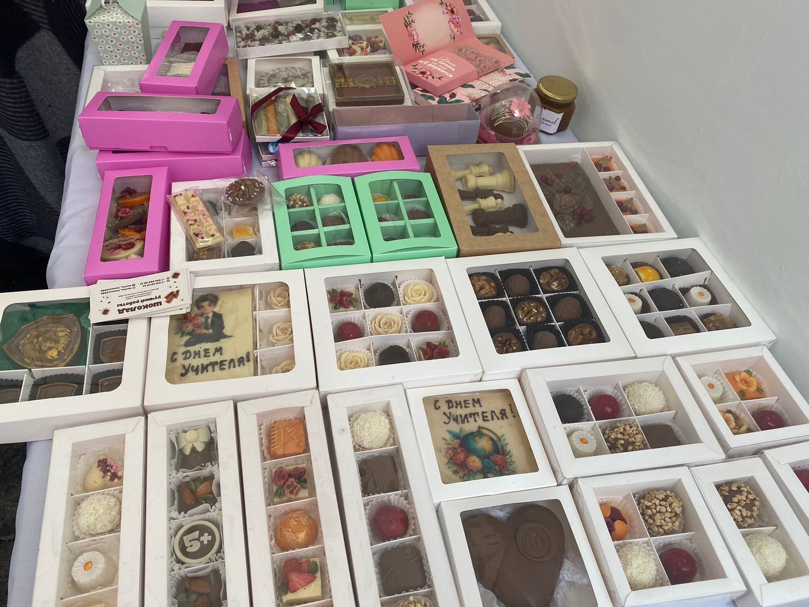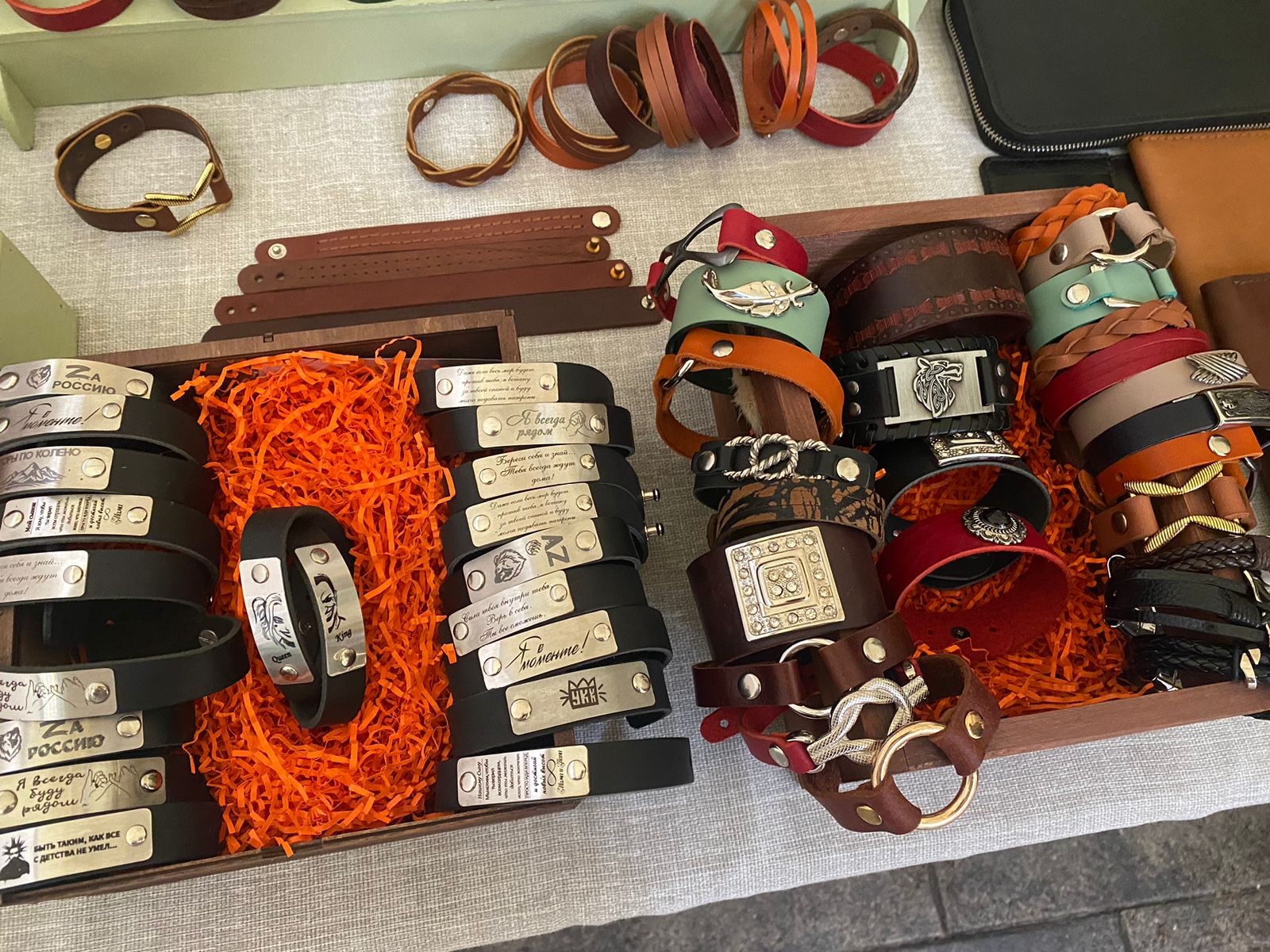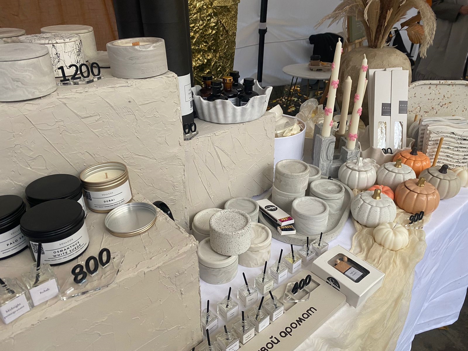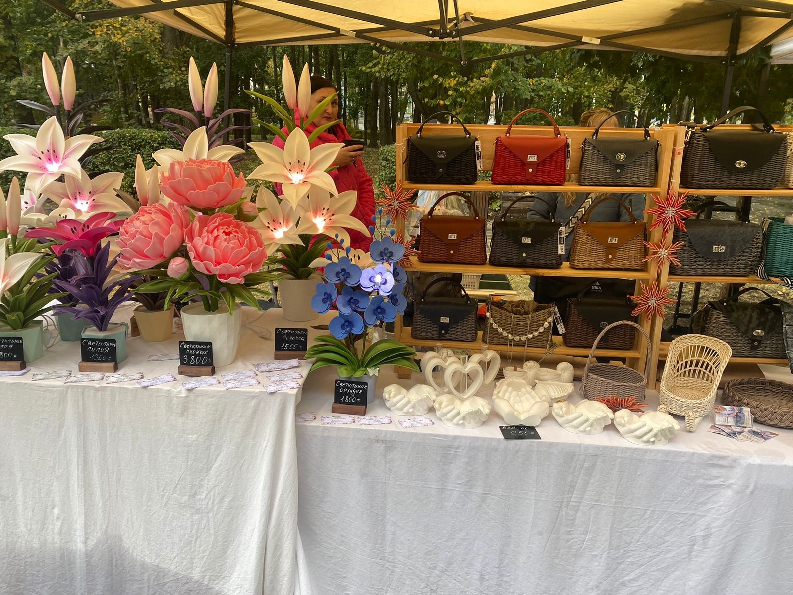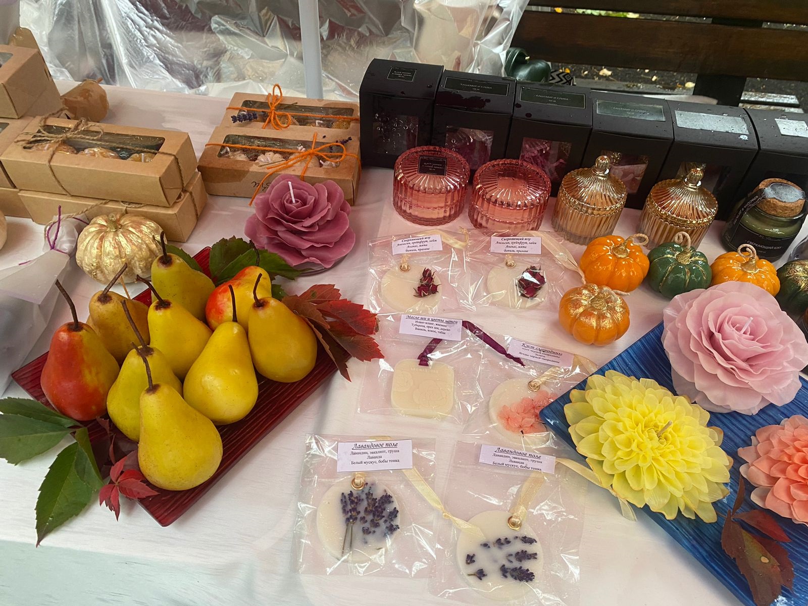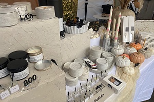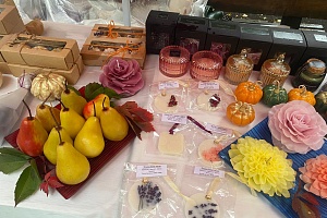Все товары на ярмарке были ручной работы. Это свечи, бижутерия, игрушки, аксессуары, предметы интерьера, изделия из кожи, гипсовые скульптуры, подарочные наборы.