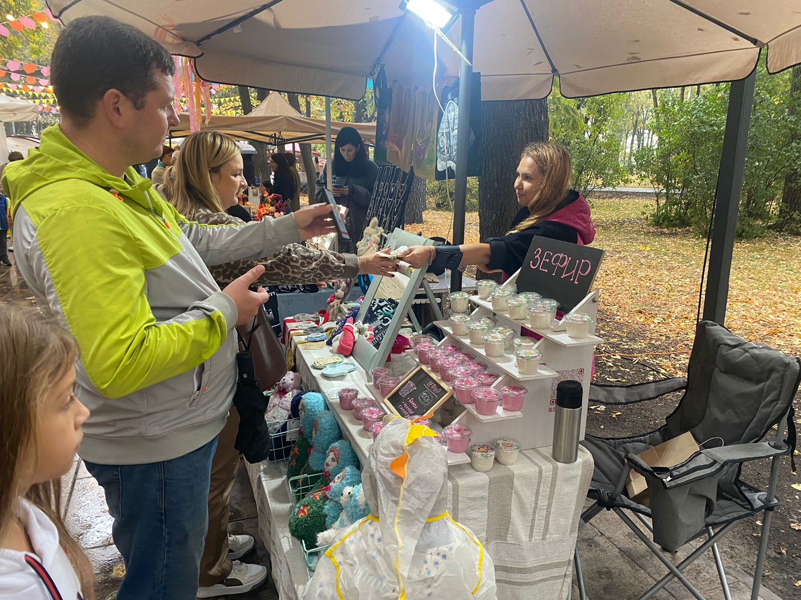 Несмотря на дождь желающих посетить ярмарку товаров ручной работы было много, а красочные фотозоны стали центром притяжения гостей паркового пространства.