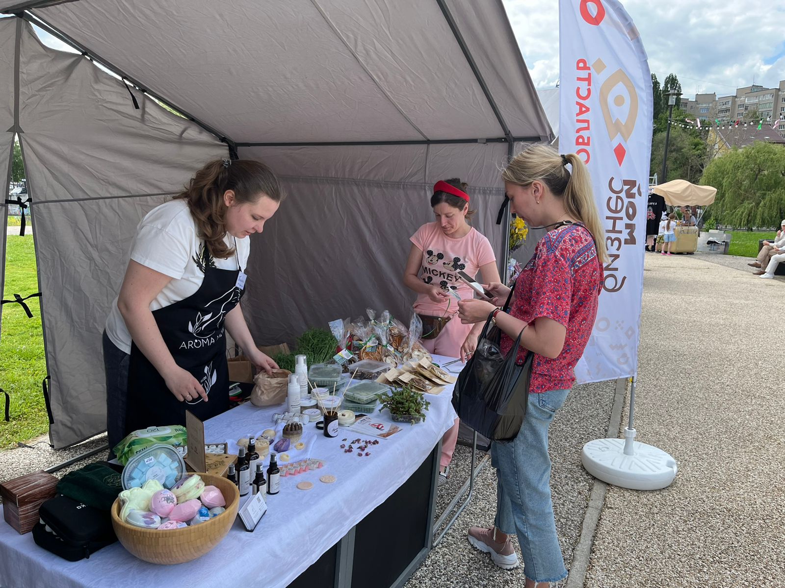 Специалистами центра «Мой бизнес» была организована деловая площадка, на которой сотрудники рассказывали о преимуществах и перспективах предпринимательства, знакомили с актуальными мерами поддержки бизнеса и самозанятых граждан.