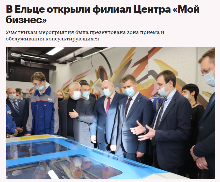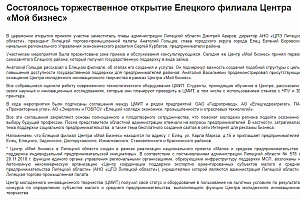 СМИ об открытии Елецкого филиала Центра "Мой бизнес"