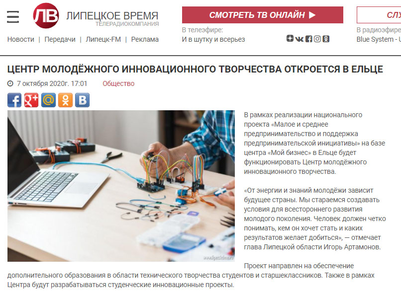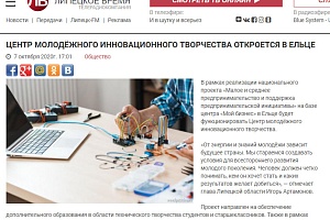 СМИ о открытии Центра молодежного инновационного творчества в г. Елец