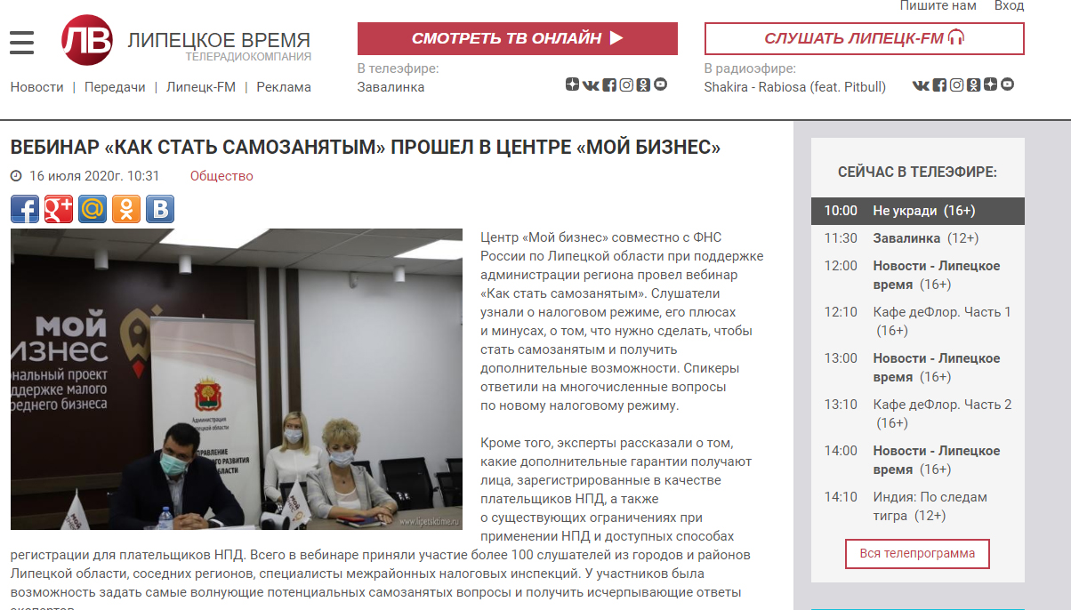 СМИ о вебинаре "Как стать самозанятым"