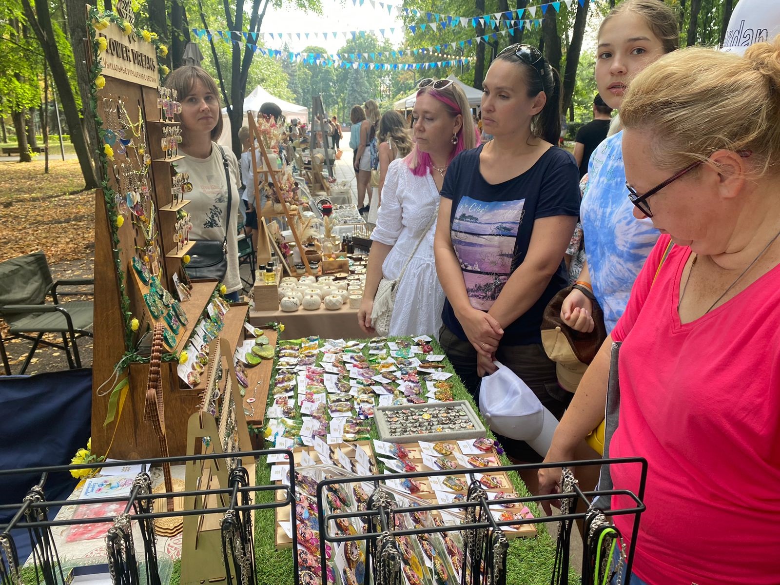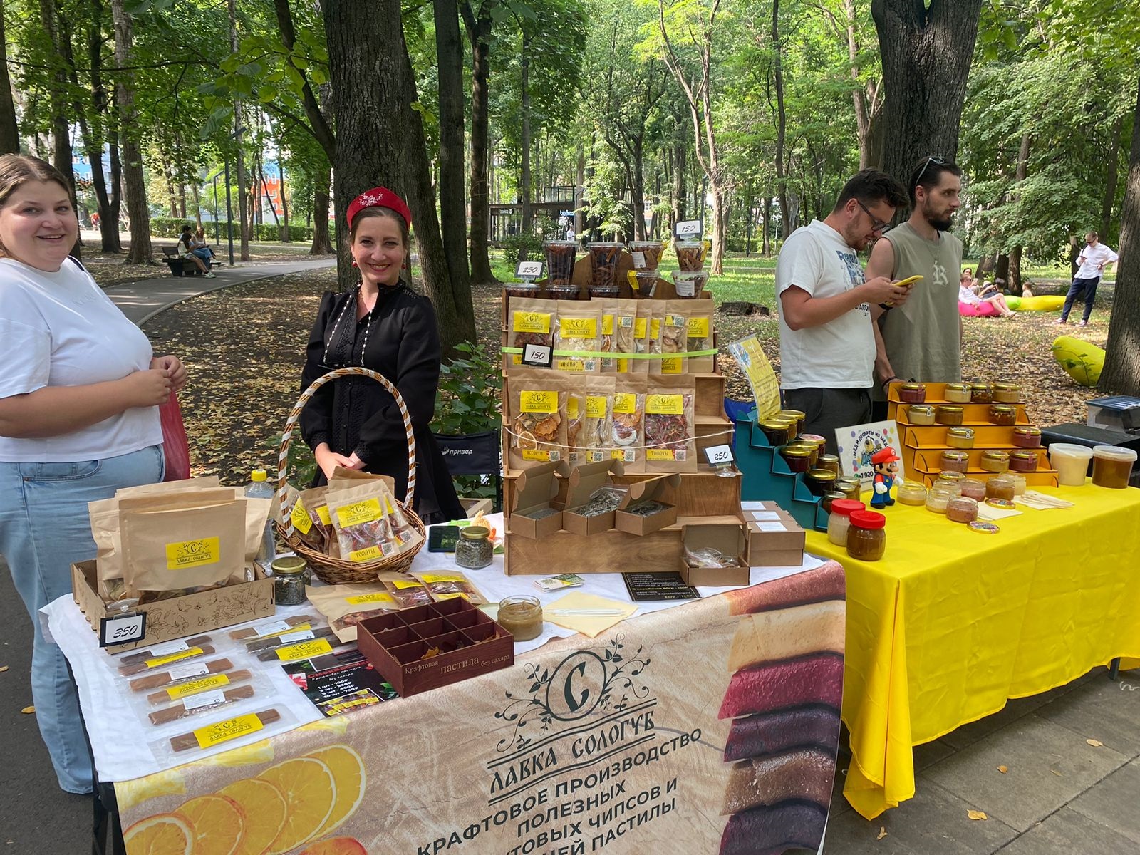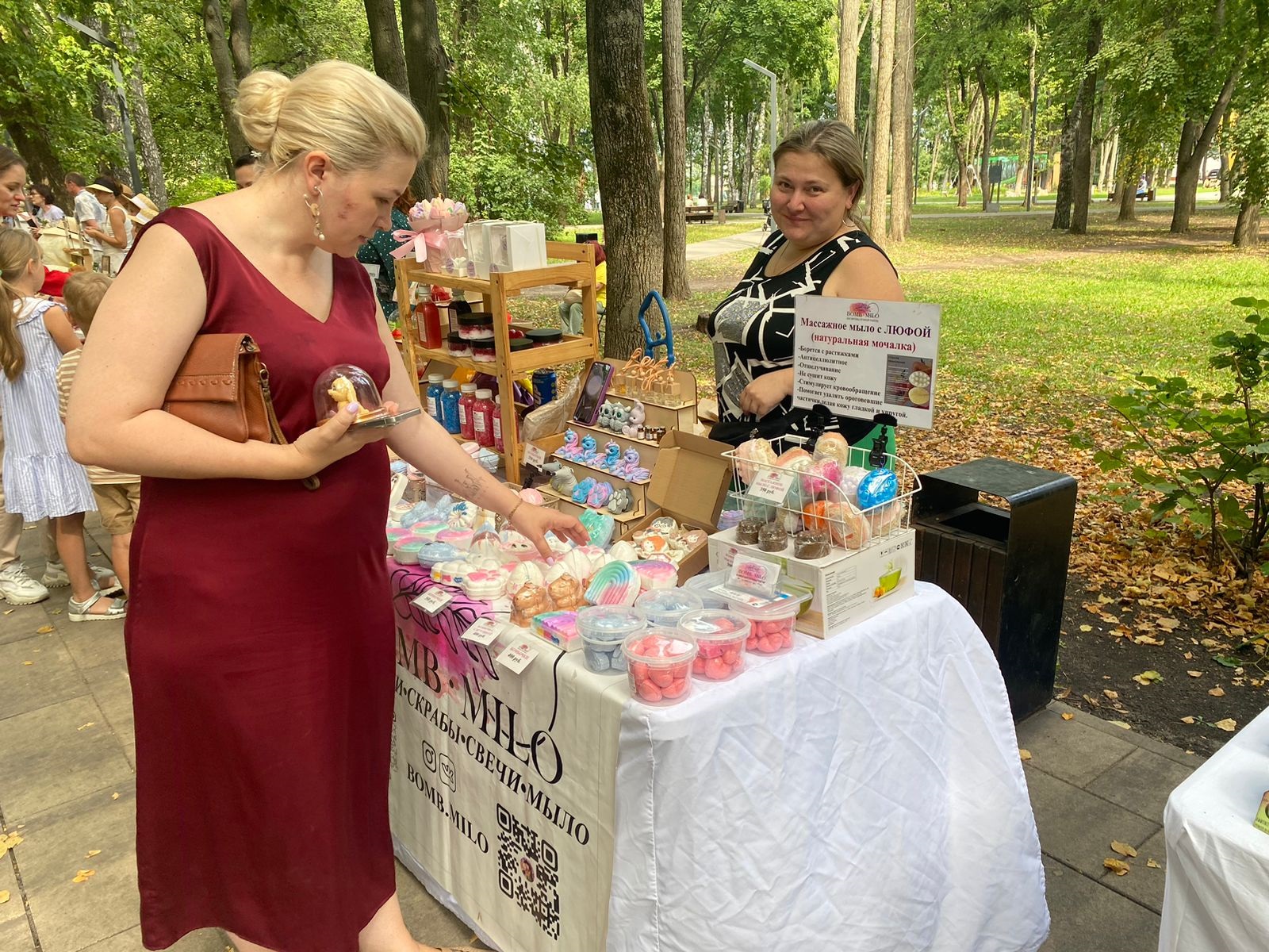 Участники фестиваля не только продавали продукцию, но и проводили мастер-классы по созданию сладкого презента к 1 сентября, росписи украшений, созданию бижутерии из сухоцветов, изготовлению броши из фетра.