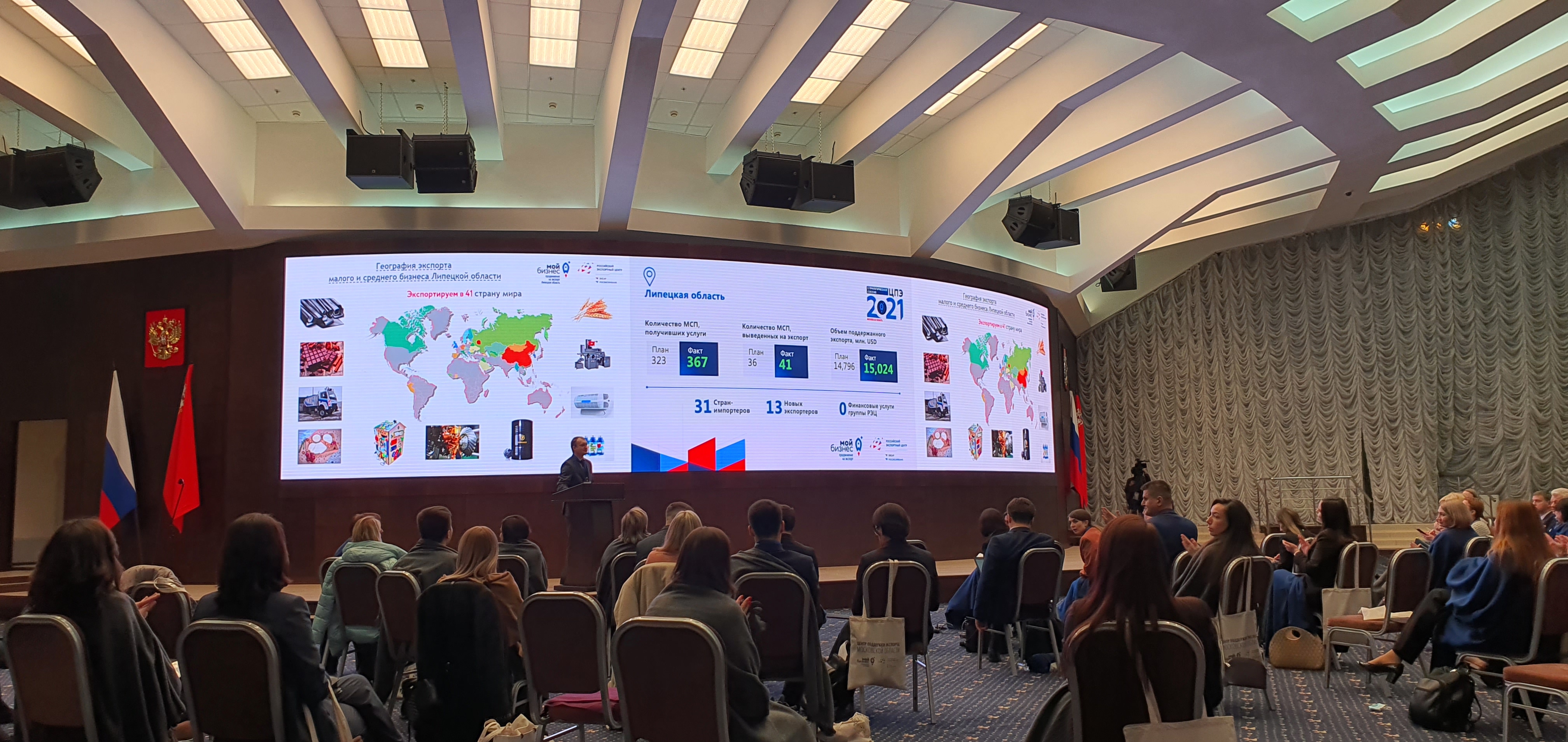 На мероприятии присутствовали первый вице-премьер Андрей Белоусов, генеральный директор АО «Российский экспортный центр» Вероника Никишина, ответственные сотрудники Минпромторга, государственной Думы и правительства Российской Федерации. Василий Анатольевич успешно презентовал экспортный потенциал малого и среднего бизнеса Липецкой области, отчитался о итогах деятельности ЦПЭ за 2020 год.