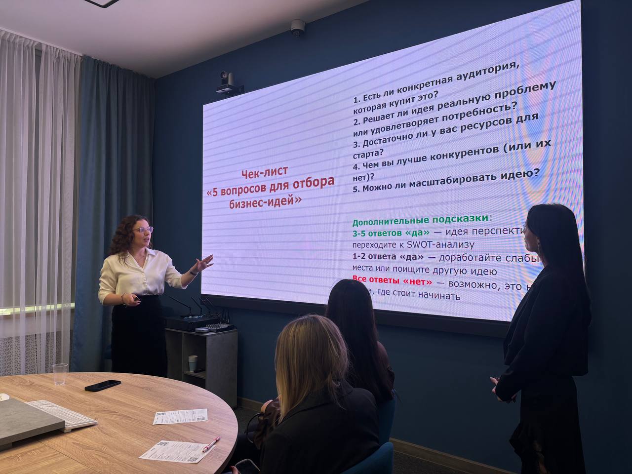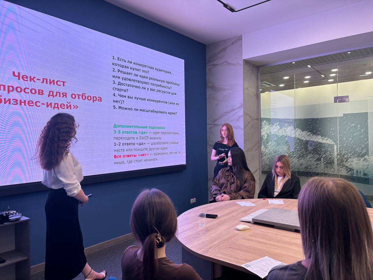 Теоретическая часть включала мини-лекцию о том, что от правильного формирования идеи зависит весь дальнейший успех проекта. От теории перешли к практике. В ходе интерактива студенты смогли протестировать свои бизнес-идеи.