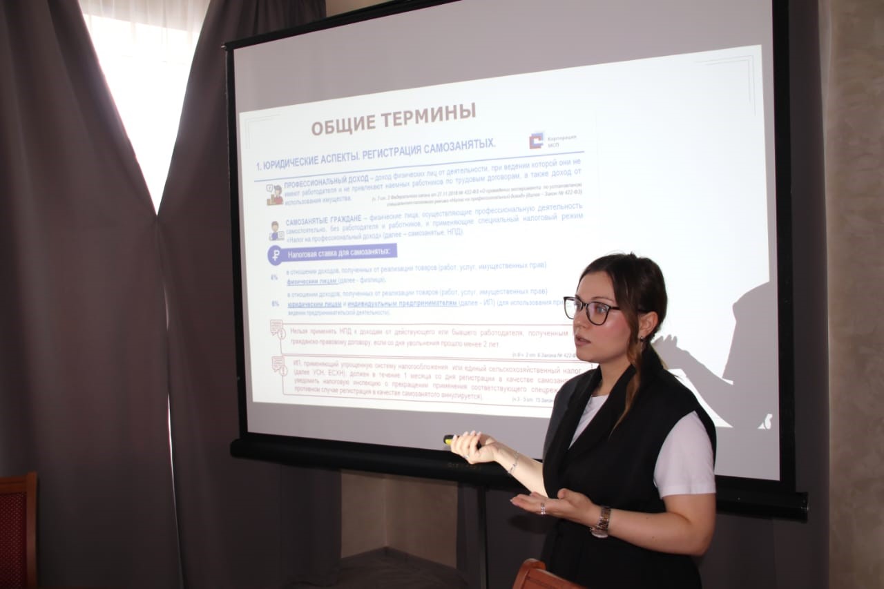 На тренинге были рассмотрены основные понятия, связанные с применением налогового режима «Налог на профессиональный доход»; основы создания ИП и статуса самозанятого; основные преимущества и ограничения использования налогового режима «Налог на профессиональный доход»; алгоритм перехода к применению налогового режима «Налог на профессиональный доход».