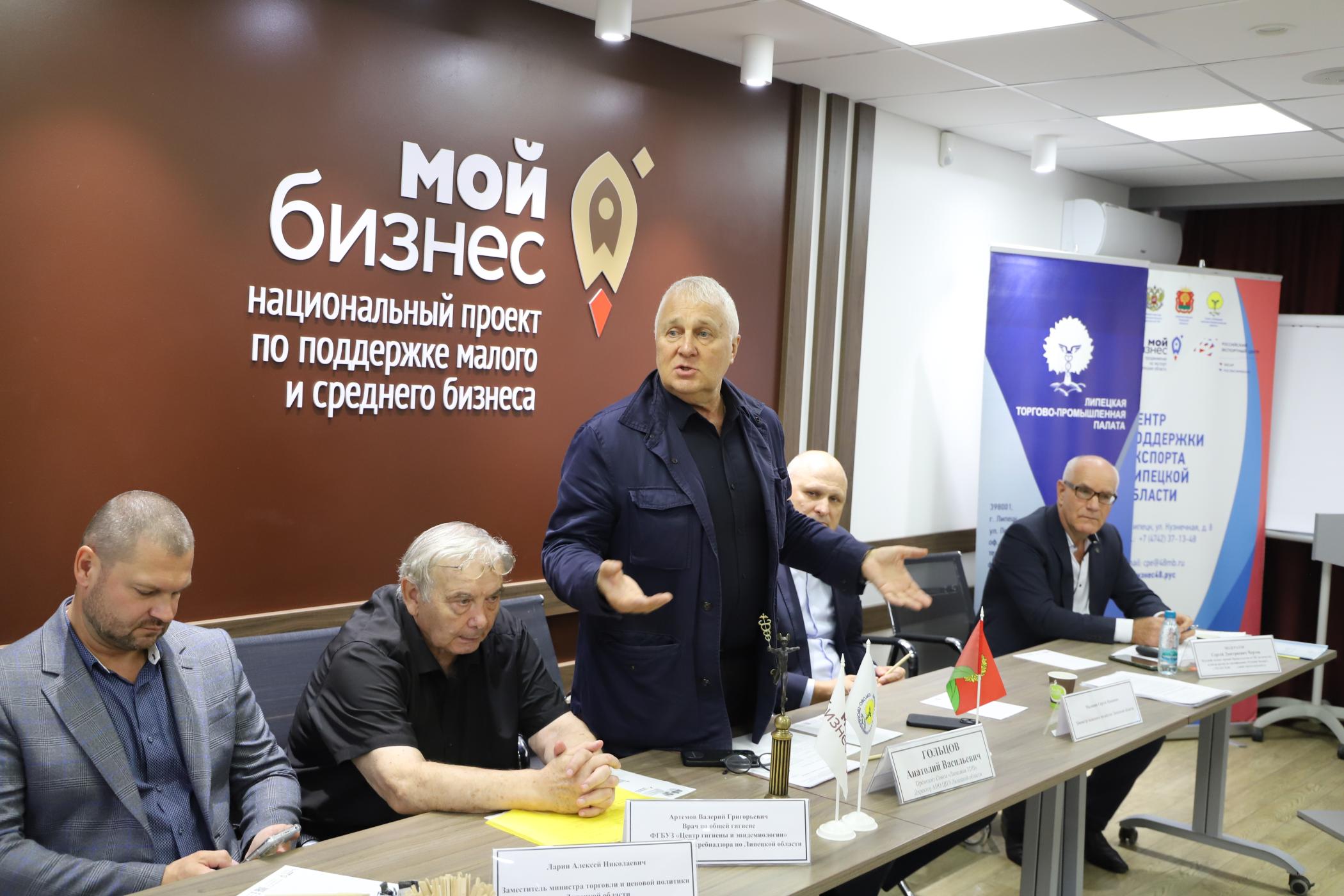 Открыл встречу и представил участников круглого стола директор АНО «ЦПЭ Липецкой области» (центр «Мой бизнес») и президент Липецкой ТПП Анатолий Гольцов. Среди них заместитель министра сельского хозяйства Липецкой области Сергей Малинин, заместитель министра торговли и ценовой политики Липецкой области Алексей Ларин, врач по общей гигиене ФГБУЗ «Центр гигиены и эпидемиологии в Липецкой области» Валерий Артемов.