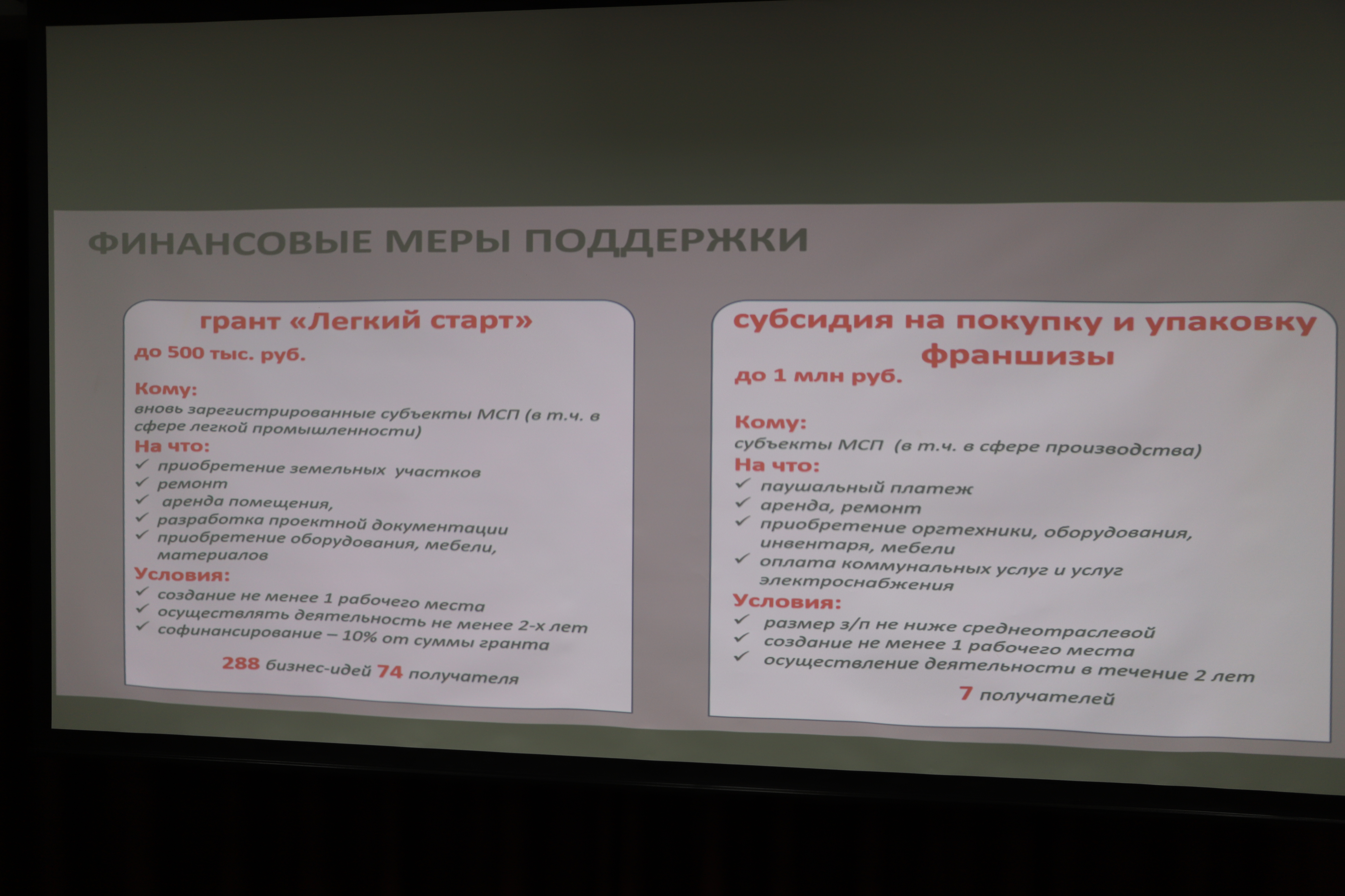 В Липецкой области предпринимателям оказывается широкий спектр мер поддержки: от консультаций до вывода на рынки и помощи в развитии производств, налаживании кооперационных связей. Для начинающих предпринимателей доступен грант «Легкий старт» до 500 тысяч рублей на открытие своего дела. Социально ориентированные и молодые предприниматели до 25 лет могут рассчитывать на финансовую помощь до 500 тысяч рублей. Также можно возместить до полумиллиона рублей за размещение товаров на маркетплейсах и до 1 миллиона рублей на покупку и упаковку франшизы. Востребованы среди бизнеса льготные микрозаймы и поручительства Областного фонда поддержки предпринимательства. Также популярны услуги центра «Мой бизнес»: регистрация товарного знака, участие в ярмарках-выставках, создание сайтов, сертификация, вывод на маркетплейсы, образовательные программы.