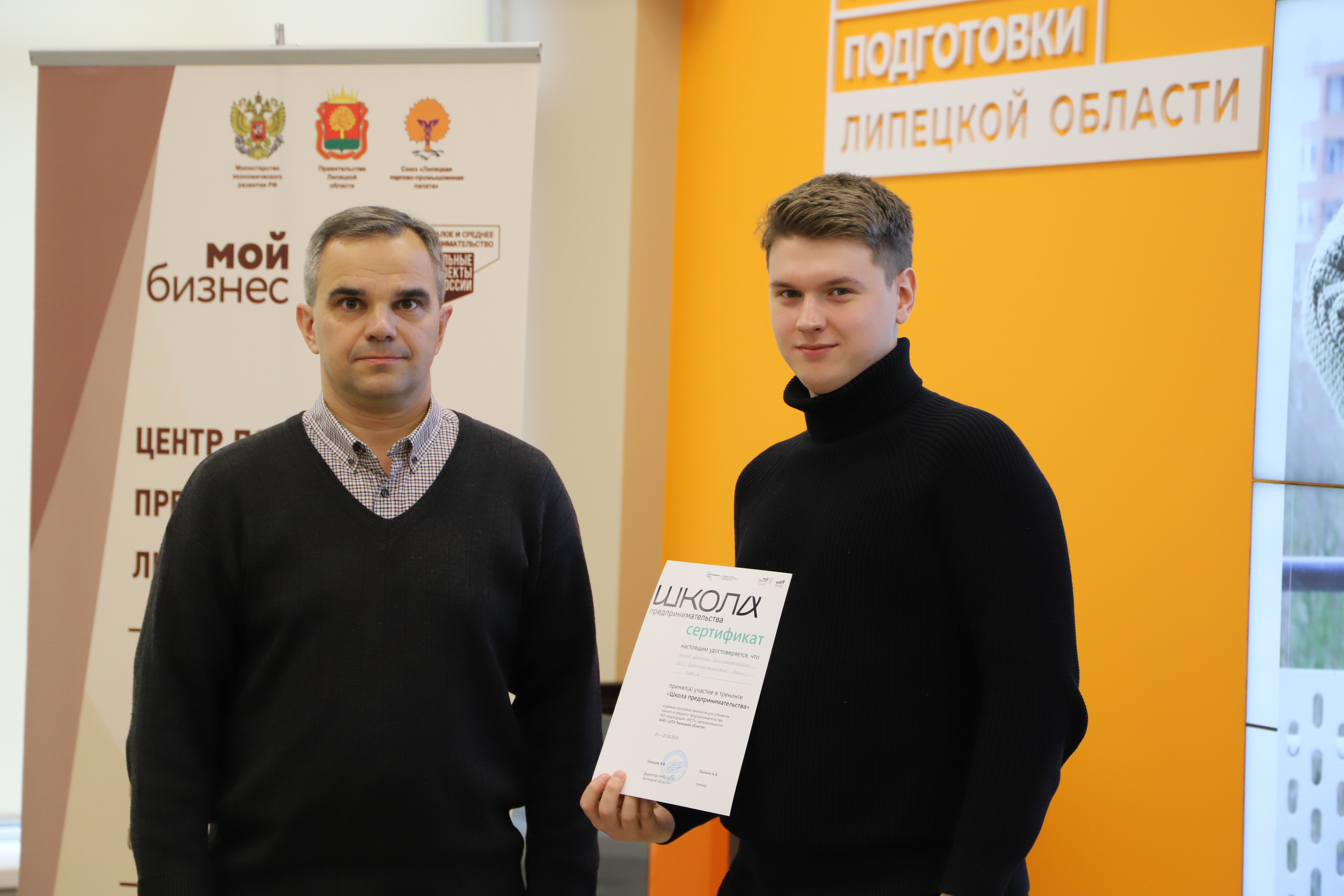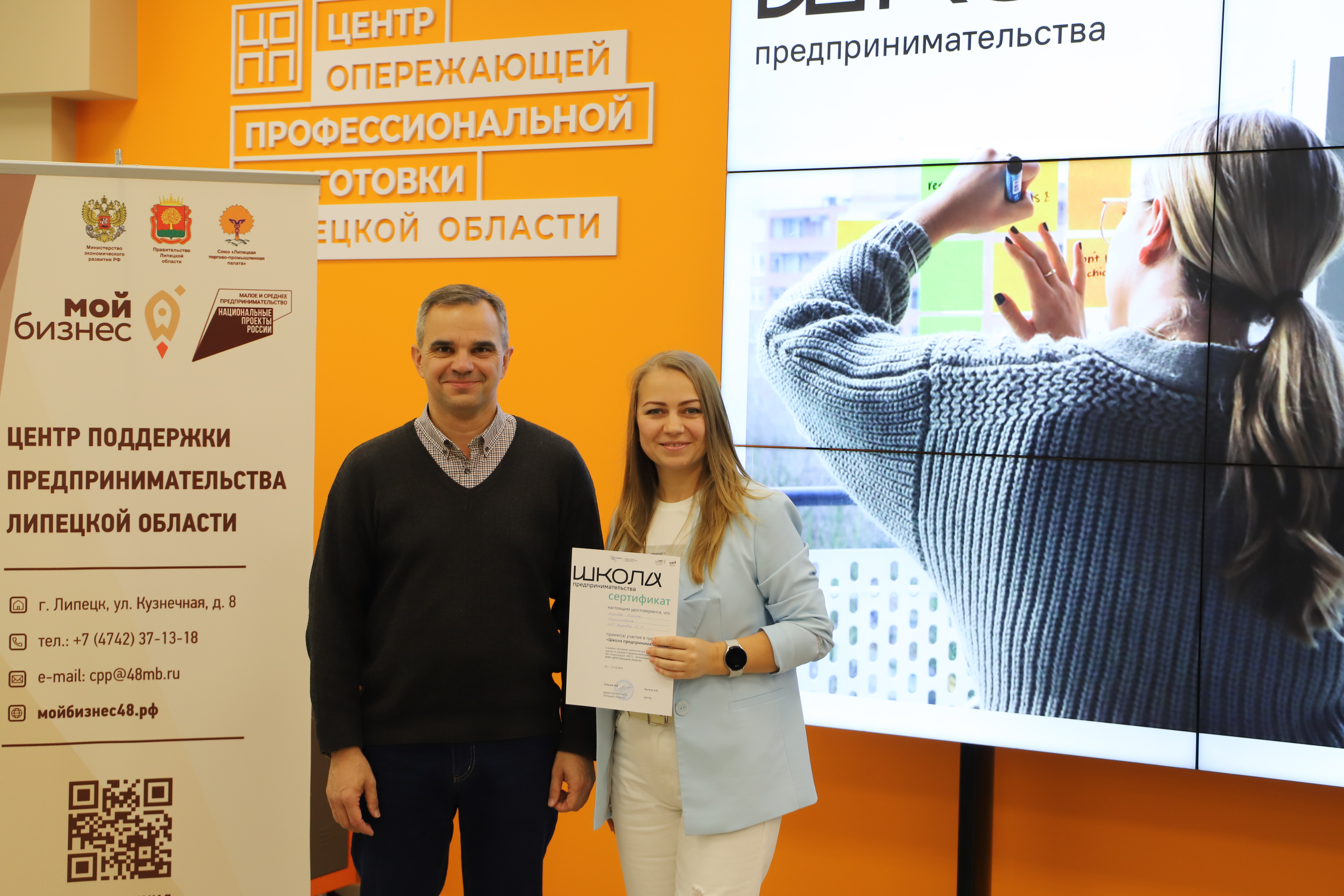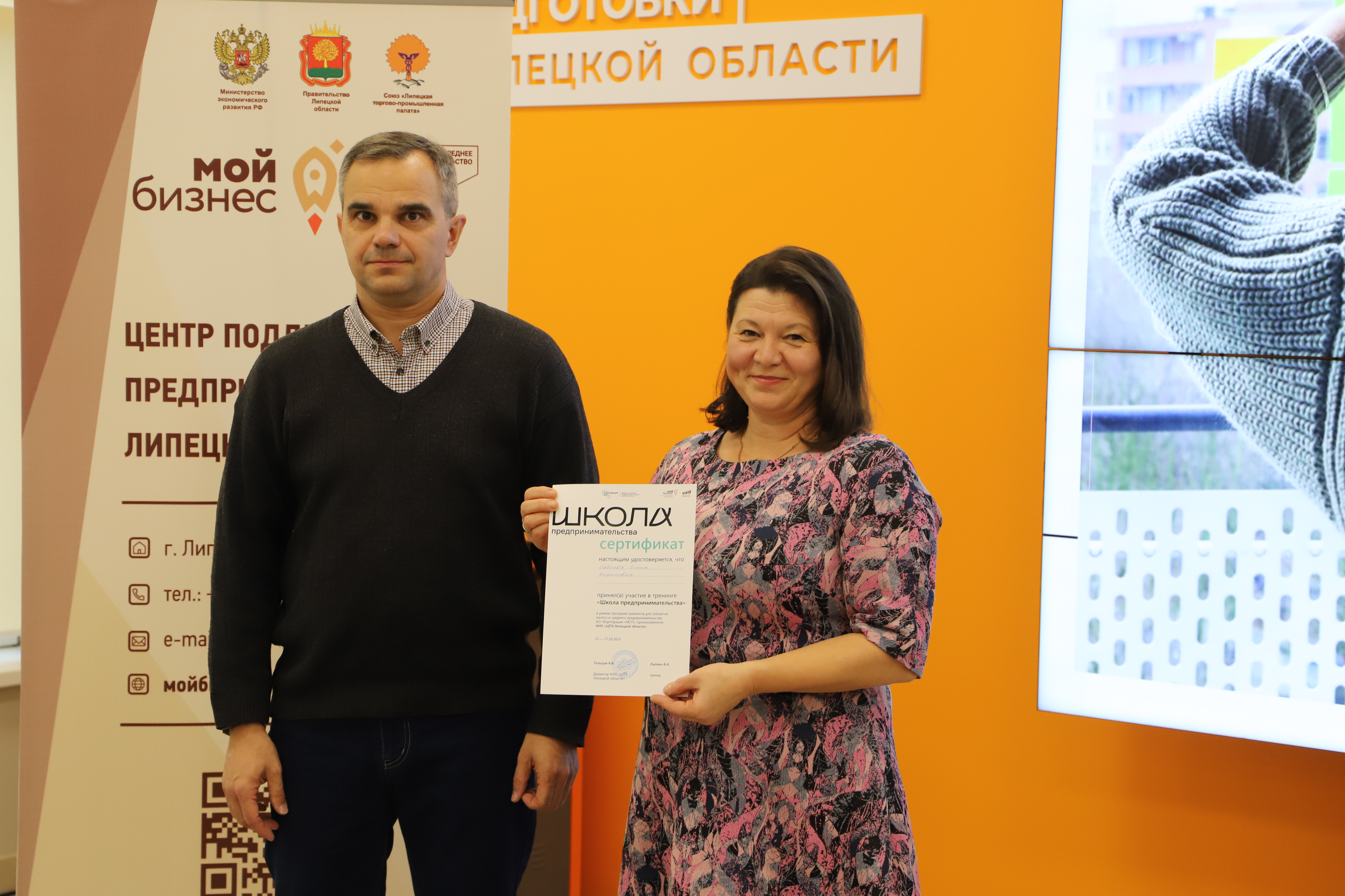 Именные сертификаты вручил центр «Мой бизнес» выпускникам «Школы предпринимательства». Она проходила в Липецкой области в седьмой раз с 23 по 27 октября. Учебную программу освоили 43 предпринимателя из Липецка и районов области. Возраст выпускников самый разный – от молодёжи до пенсионеров.