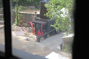 Выставка-ярмарка «У Мельницы» расположилась не только снаружи креативного пространства, но и внутри. Интерьер старинного здания с порога погружает гостей в атмосферу творчества. На площади в 1200 квадратных метров его создатели разместили мастерские, фотостудии, театр, где проводятся концерты, встречи и лекции и многое другое. Владелец здания Александр Хрюкин сдает помещения на льготных условиях. В постройке начала XX века раньше находилась мельница, а затем ремесленное училище.