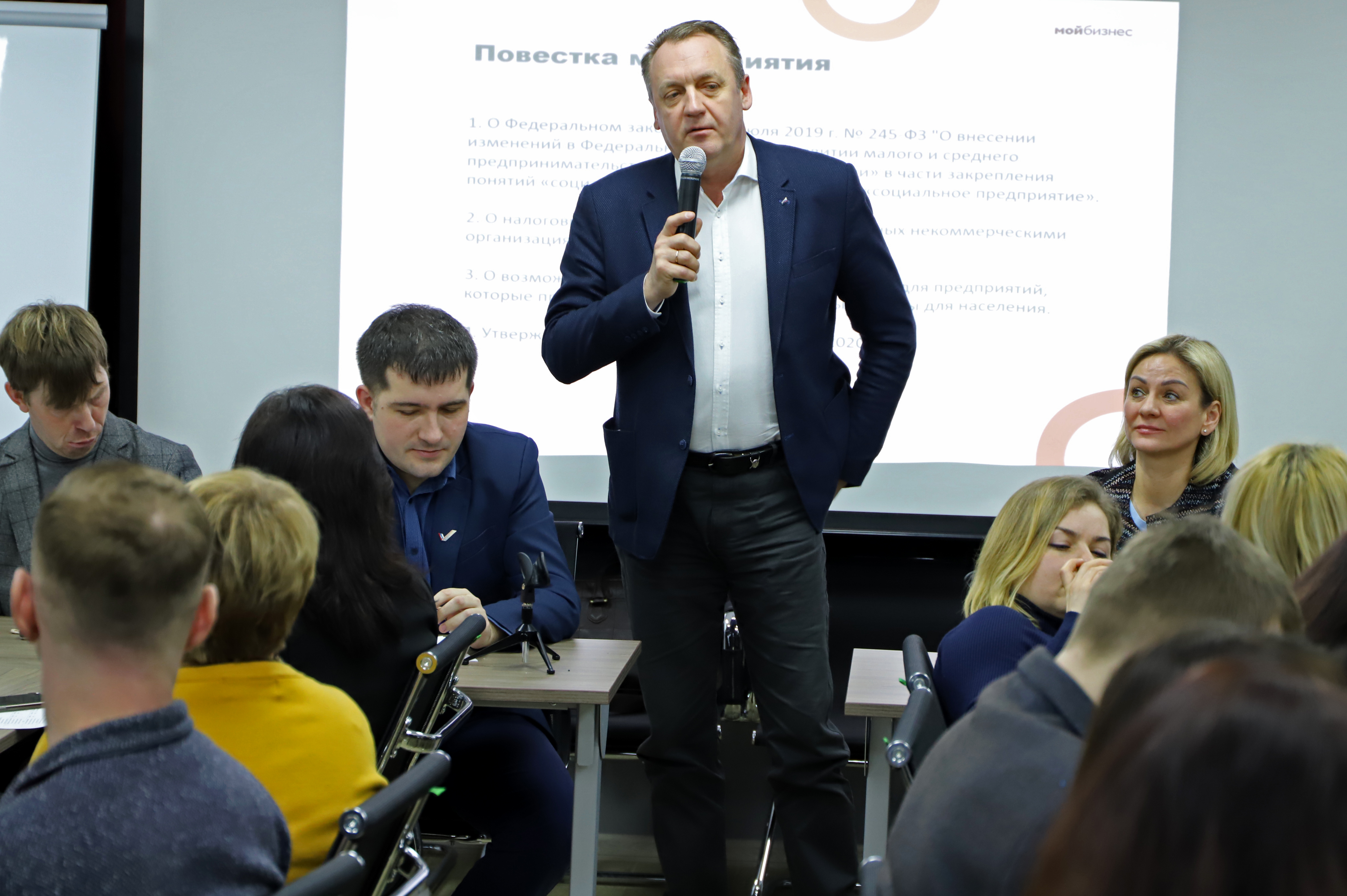 Темы, которые стали предметом для обсуждения, были связаны с предоставлением поддержки для социальных предпринимателей, а также рассмотрены вопросы совершенствования законодательства в отношении того же социального предпринимательства. Представителями комитета обсуждалось содержание Федерального закона от 26 июля 2019 г. № 245-ФЗ "О внесении изменений в Федеральный закон «О развитии малого и среднего предпринимательства в Российской Федерации» в части закрепления понятий «социальное предпринимательство». Термин «социальное предприятие», активно входит в нашу жизнь, и разобраться во всех тонкостях, в этот день помогали руководители и эксперты профильных органов власти. На вопросы о налоговых льготах для предприятий, созданных некоммерческими организациями, где трудоустроены инвалиды, а также о возможности предоставления налоговых льгот для предприятий, которые производят социально-приоритетные товары для населения, ответили представители Федеральной налоговой службы Липецкой области. Модератором мероприятия и социальным «арбитром» выступил Максим Загрядский, являясь членом регионального штаба ОНФ в Липецкой области, он отметил значимость диалога всех заинтересованных сторон.