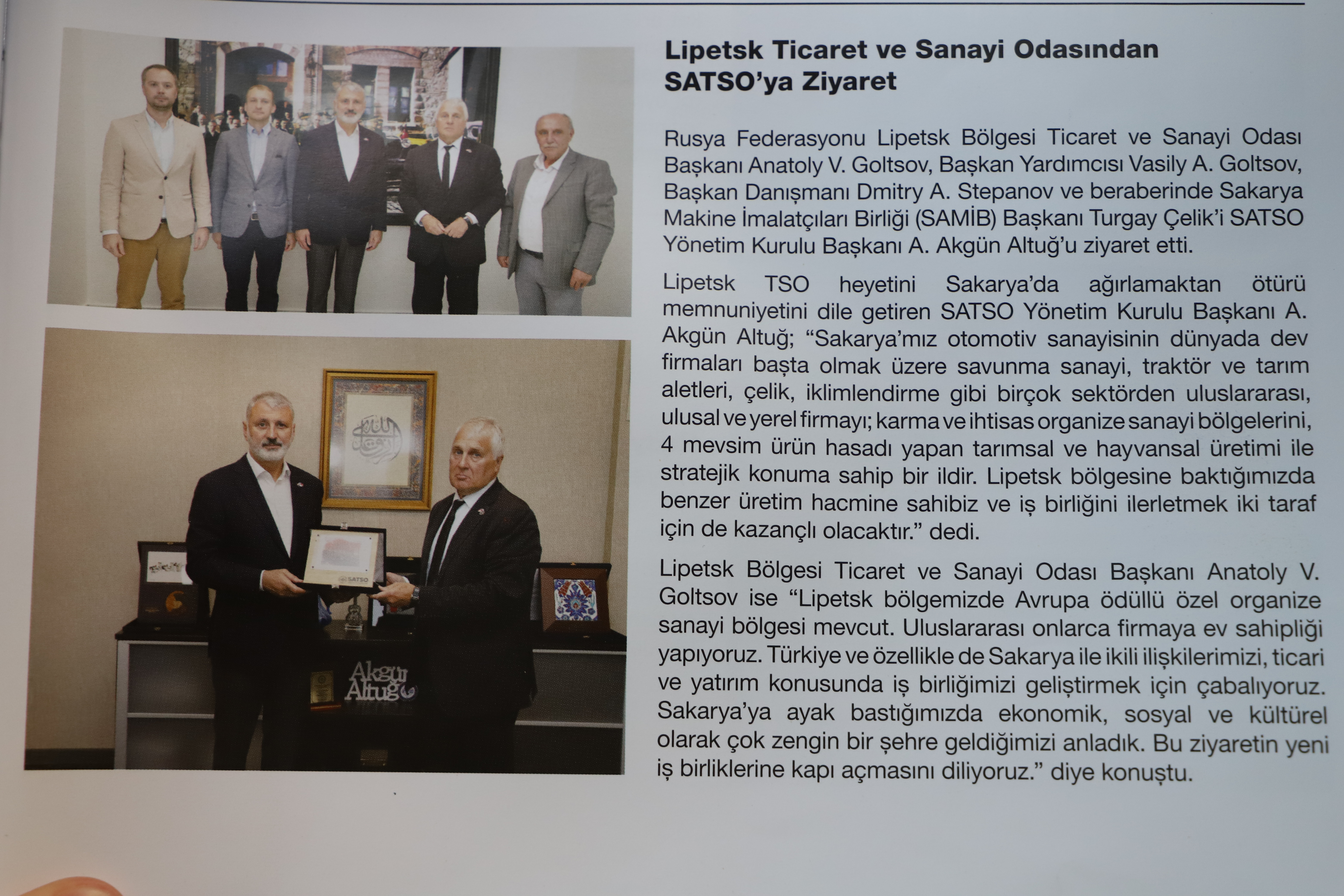 Расширение деловых контактов Липецкой области с Турецкой республикой, сотрудничество торгово-промышленных палат турецкой провинции Сакарьи и нашего региона нашло отражение в периодическом издании «Economi» провинции Сакарья: